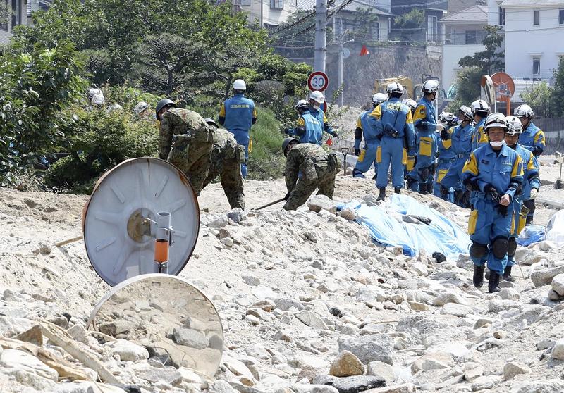 About 15,000 personnel have been dispatched from the police, fire stations and the Self-Defense Forces to continue search activities for those missing in Hiroshima Prefecture, where more than 100 people have died in the disaster. Such operations are likely to extend for some time due to the many enormous rocks and deposits of earth and sand left by the floods.