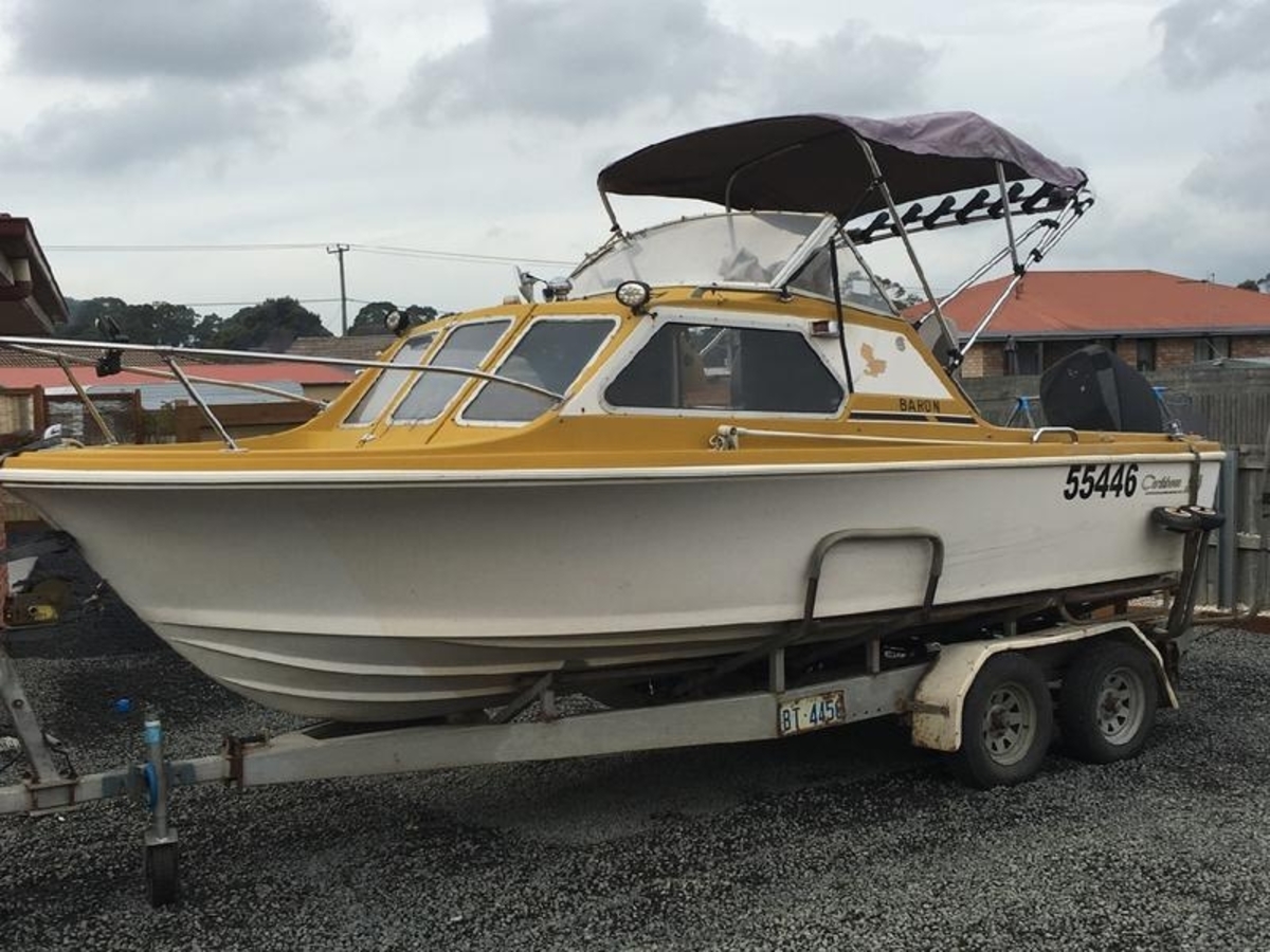 Tasmania Police is planning to utilise sonar technology on Monday to comb an area of about 320 hectares where they believe the white and yellow boat is located.