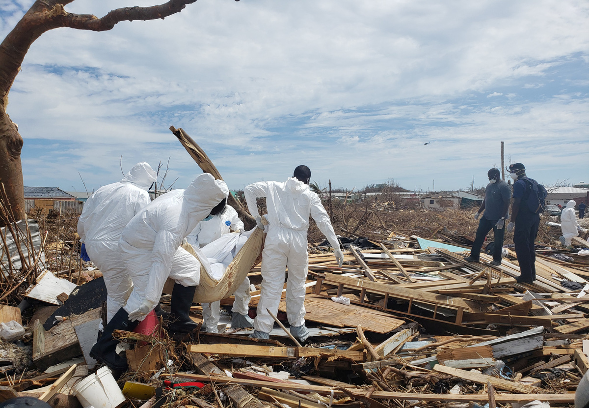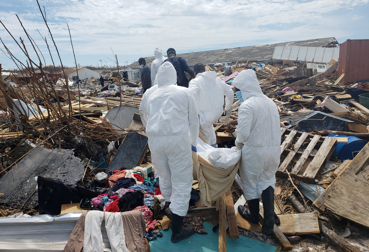 Large swaths of Greater Abaco Island were destroyed. Reuters journalists saw search crews using geotagging technology to mark the locations of bodies in the hard-hit Mudd section of Marsh Harbour on that island.