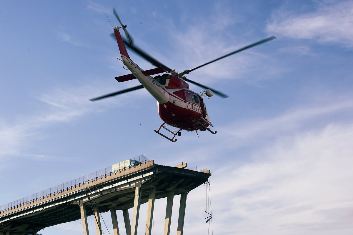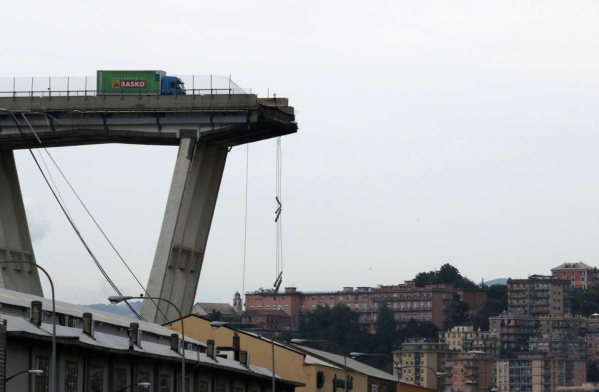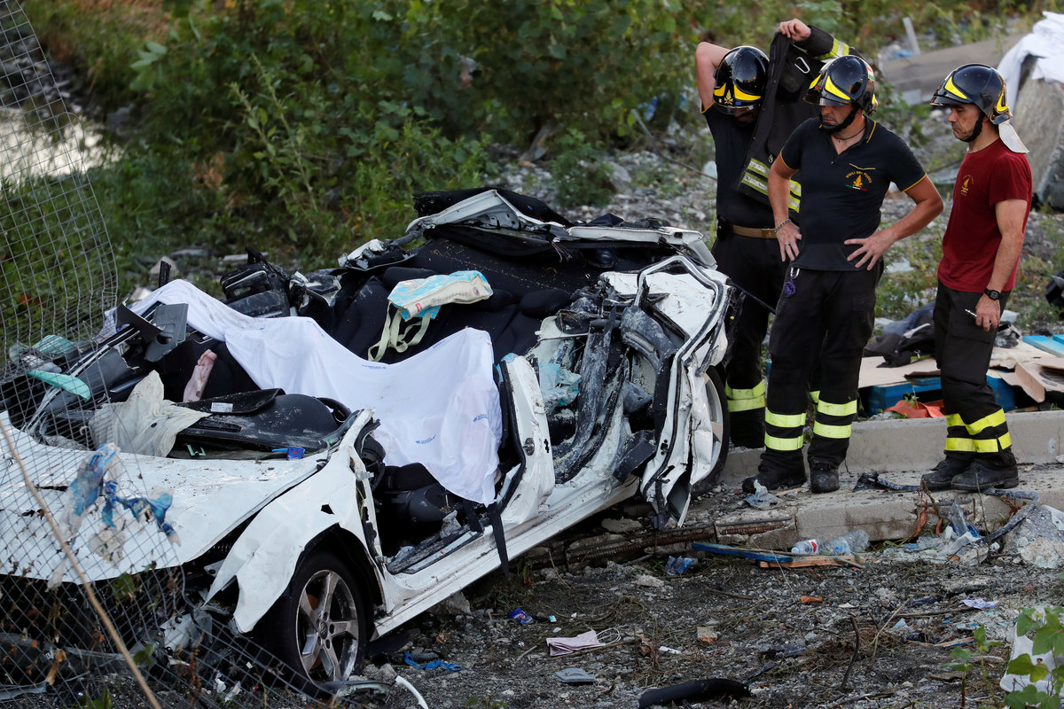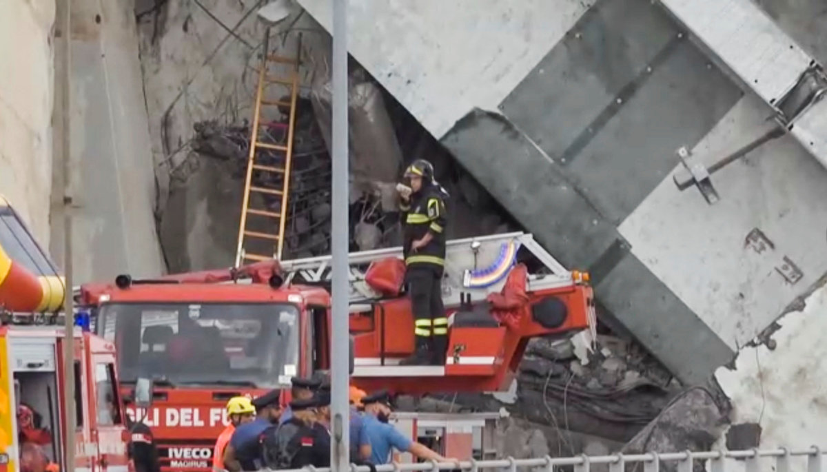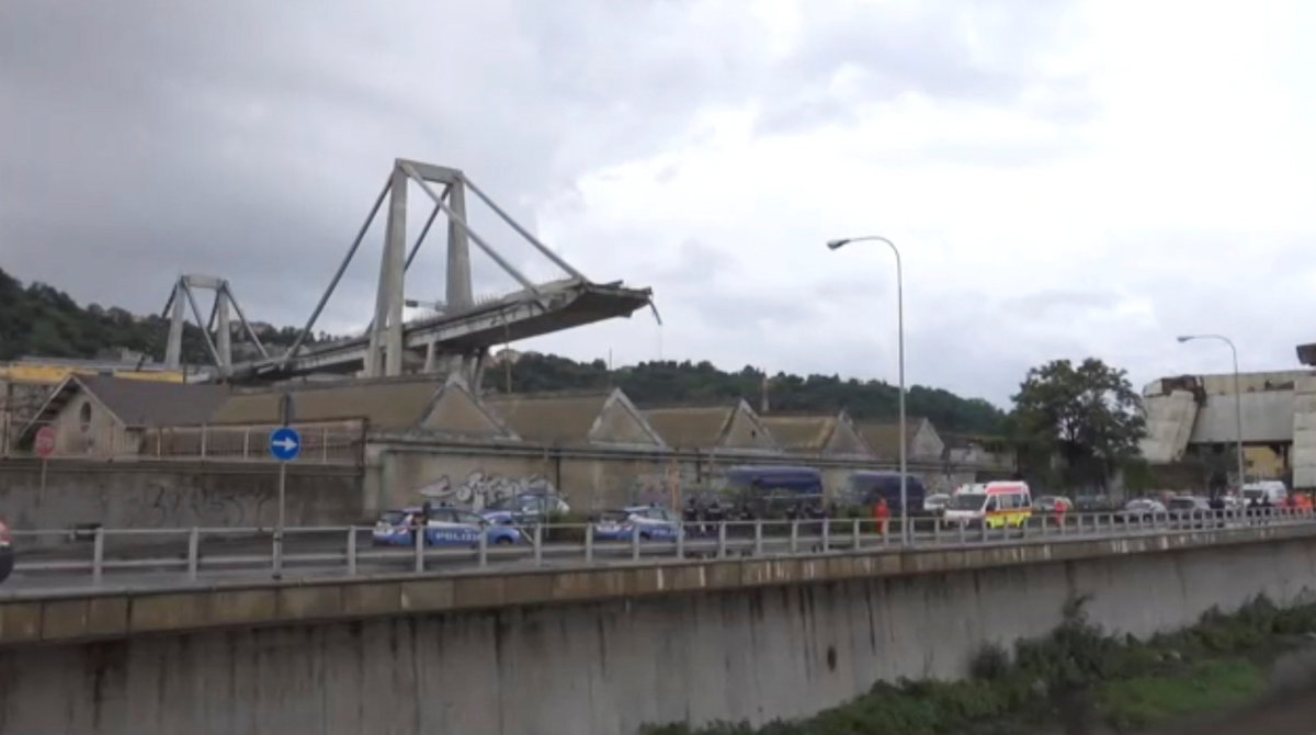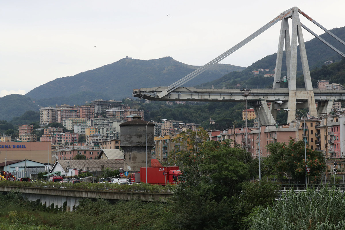 Rescue workers are seen at the collapsed Morandi Bridge in the Italian port city of Genoa, Italy August 14, 2018. REUTERS/Stefano RellandiniRescue workers are seen at the collapsed Morandi Bridge in the Italian port city of Genoa, Italy August 14, 2018. REUTERS/StringerRescue workers are seen at the collapsed Morandi Bridge in the Italian port city of Genoa, Italy, August 14, 2018. Local Team via Reuters TV/REUTERSThe collapsed Morandi Bridge is seen in the Italian port city of Genoa. Italian Firefighters Press Office/Handout via REUTERSA rescue helicopter flies over the collapsed Morandi Bridge in the Italian port city of Genoa, Italy August 14, 2018. REUTERS/Stefano RellandiniThe collapsed Morandi Bridge is seen in the Italian port city of Genoa, Italy August 14, 2018. REUTERS/Stefano RellandiniThe collapsed Morandi Bridge is seen in the Italian port city of Genoa, Italy August 14, 2018. REUTERS/Stefano RellandiniThe collapsed Morandi Bridge is seen in the Italian port city of Genoa, Italy August 14, 2018. REUTERS/Stefano RellandiniThe collapsed Morandi Bridge is seen in the Italian port city of Genoa, Italy August 14, 2018. REUTERS/Stefano RellandiniThe collapsed Morandi Bridge is seen in the Italian port city of Genoa, Italy, August 14, 2018. Local Team via Reuters TV/REUTERSRescue workers are seen at the collapsed Morandi Bridge in the Italian port city of Genoa, Italy August 14, 2018 in this still image taken from a video. Local Team via Reuters TV/REUTERSRescue workers are seen at the collapsed Morandi Bridge in the Italian port city of Genoa, Italy August 14, 2018 in this still image taken from a video. Local Team via Reuters TV/REUTERSRescue workers are seen at the collapsed Morandi Bridge in the Italian port city of Genoa, Italy, August 14, 2018. Local Team via Reuters TV/REUTERSThe collapsed Morandi Bridge is seen in the Italian port city of Genoa in this picture released by Italian firefighters on August 14, 2018. Italian Firefighters Press Office/Handout via REUTERSRescue workers are seen at the collapsed Morandi Bridge in the Italian port city of Genoa, Italy August 14, 2018 in this still image taken from a video. Local Team via Reuters TV/REUTERSThe collapsed Morandi Bridge is seen in the Italian port city of Genoa, Italy, August 14, 2018. Local Team via Reuters TV/REUTERSRescue workers are seen at the collapsed Morandi Bridge in the Italian port city of Genoa, Italy August 14, 2018 in this still image taken from a video. Local Team via Reuters TV/REUTERSRescue workers are seen at the collapsed Morandi Bridge in the Italian port city of Genoa, Italy August 14, 2018 in this still image taken from a video. Local Team via Reuters TV/REUTERSRescue workers are seen at the collapsed Morandi Bridge in the Italian port city of Genoa, Italy August 14, 2018 in this still image taken from a video. Local Team via Reuters TV/REUTERSRescue workers are seen at the collapsed Morandi Bridge in the Italian port city of Genoa, Italy August 14, 2018 in this still image taken from a video. Local Team via Reuters TV/REUTERSRescue workers are seen at the collapsed Morandi Bridge in the Italian port city of Genoa, Italy August 14, 2018 in this still image taken from a video. Local Team via Reuters TV/REUTERSRescue workers are seen at the collapsed Morandi Bridge in the Italian port city of Genoa, Italy August 14, 2018 in this still image taken from a video. Local Team via Reuters TV/REUTERSThe collapsed Morandi Bridge is seen in the Italian port city of Genoa in this picture released by Italian firefighters on August 14, 2018. Italian Firefighters Press Office/Handout via REUTERSThe collapsed Morandi Bridge is seen in the Italian port city of Genoa in this picture released by Italian firefighters on August 14, 2018. Italian Firefighters Press Office/Handout via REUTERS