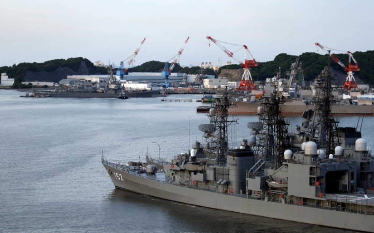 The Arleigh Burke-class guided-missile destroyer USS Fitzgerald, damaged by colliding with a Philippine-flagged merchant vessel, is towed into the U.S. naval base as Japanese Maritime Self-Defence Force (JMSDF) naval escort vessel Yamagiri is seen in front in Yokosuka, south of Tokyo, Japan June 17, 2017. REUTERS/Toru Hanai