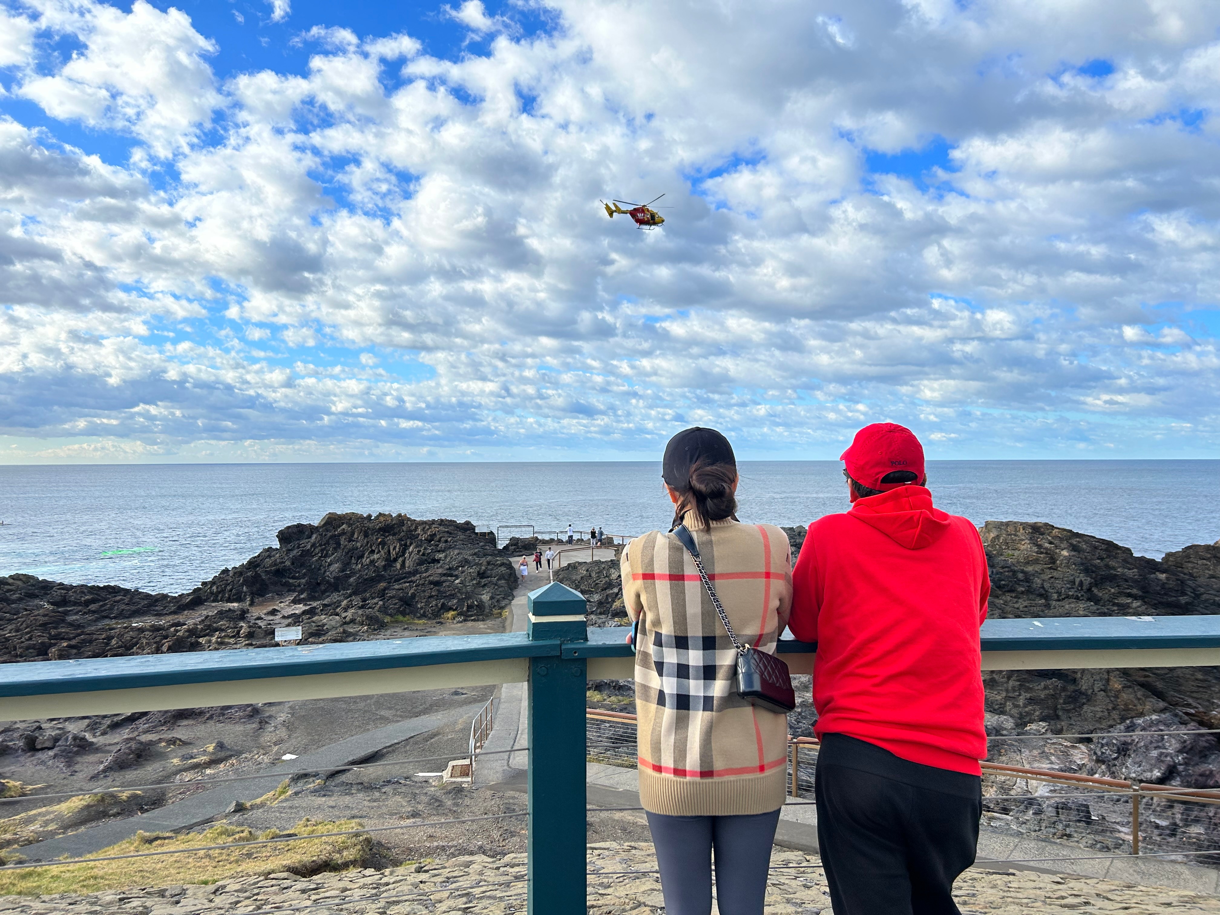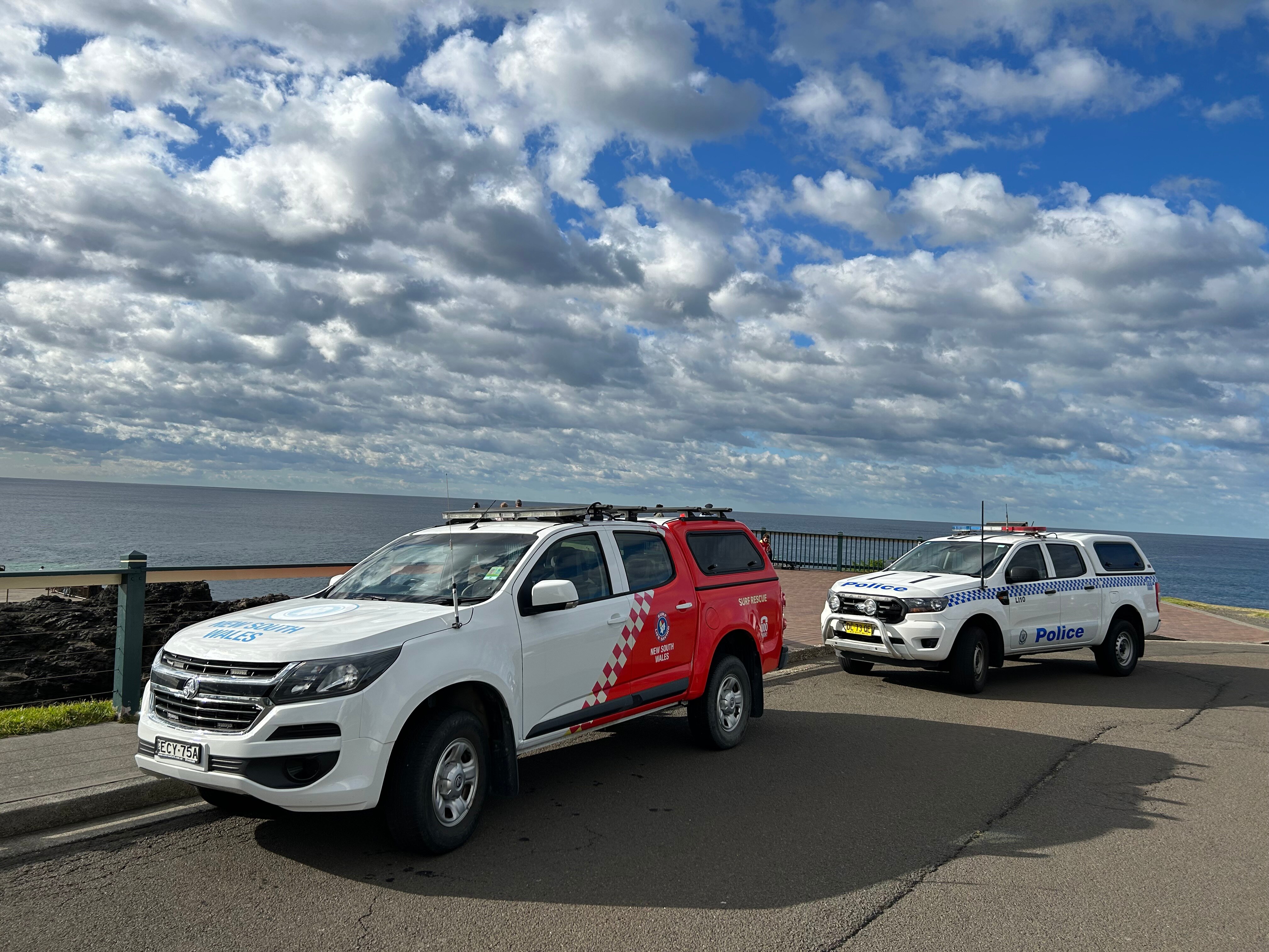 Marine Rescue, surf lifesavers, police and a helicopter are at the scene.