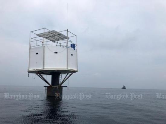 Vice-Admiral Sittiporn Maskasem, commander of the Royal Thai Navy Third Area Command, on Saturday sent officers to where the structure was set up, 15 nautical miles southeast of Racha Yai island.