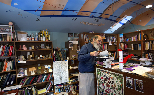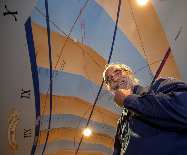 For Sullivan, the launchpad for this leap is a humble backyard enclave on Palatine Avenue North, beneath a ceiling-painted sundial record of the movements of Planet Earth, marked by events ranging from full solar eclipses to the birth of his two daughters. It is here that Sullivan, 72, parks himself nightly, between artfully stacked mounds of books and paper, to ponder alluring mysteries of the universe.