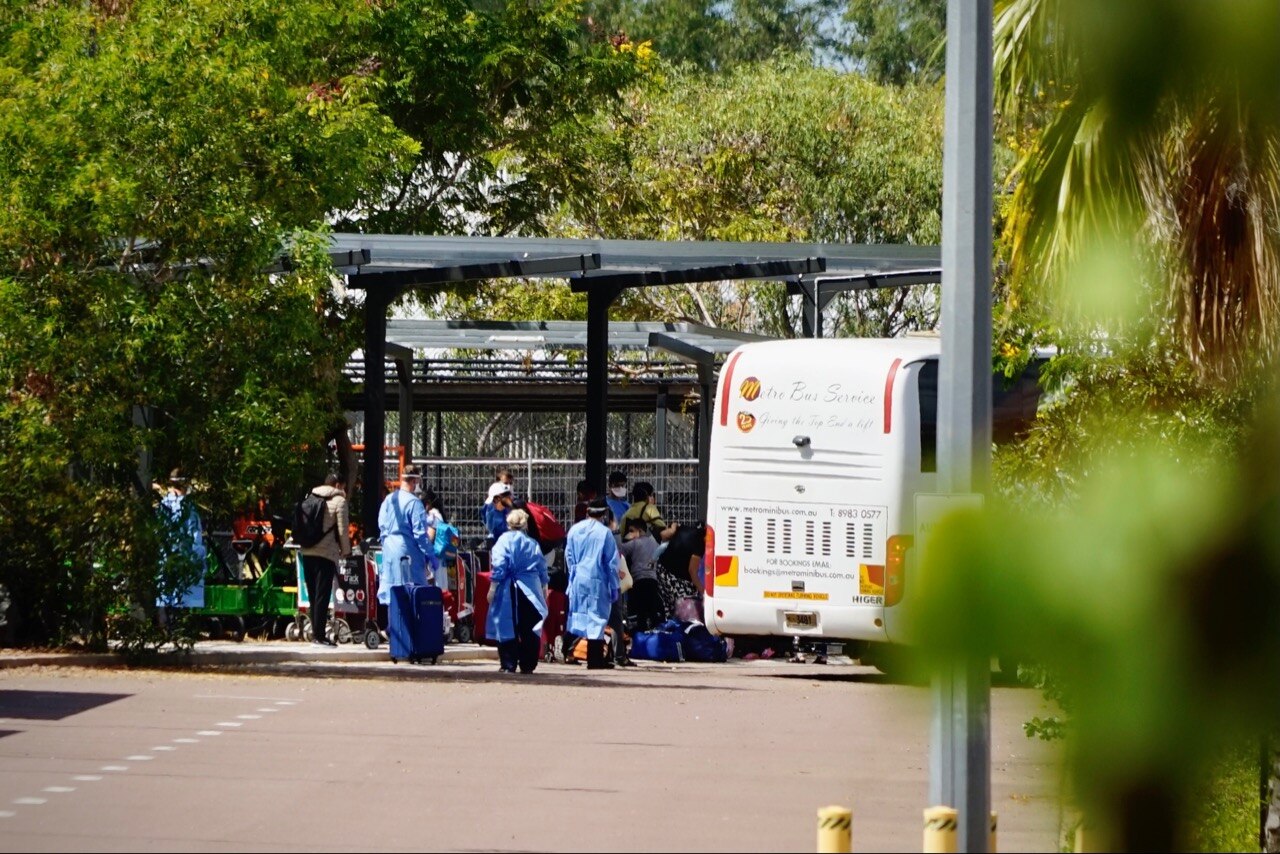 The Qantas flight touched down at the city's RAAF base and its 165 passengers will soon be taken via bus to the Howard Springs quarantine facility.