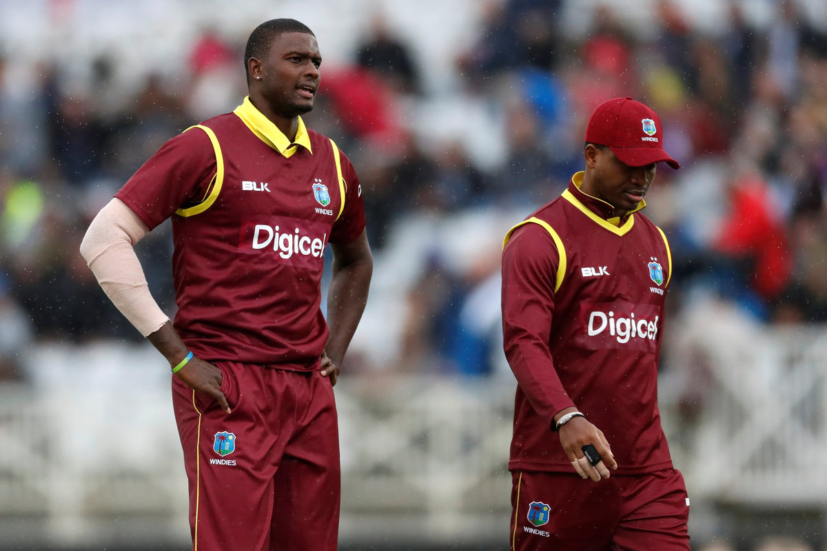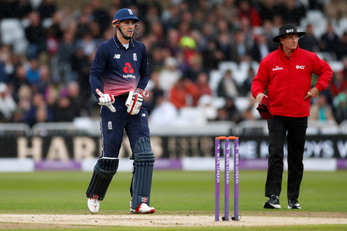 Cricket - England vs West Indies - Second One Day International - Trent Bridge, Nottingham, Britain - September 21, 2017 West Indies' Jason Holder and Marlon Samuels Action Images via Reuters/Andrew BoyersCricket - England vs West Indies - Second One Day International - Trent Bridge, Nottingham, Britain - September 21, 2017 England's Alex Hales walks off as rain stops play Action Images via Reuters/Andrew BoyersCricket - England vs West Indies - Second One Day International - Trent Bridge, Nottingham, Britain - September 21, 2017 Fans shelter under their umbrellas as rain stops play Action Images via Reuters/Andrew BoyersCricket - England vs West Indies - Second One Day International - Trent Bridge, Nottingham, Britain - September 21, 2017 Fans shelter under their umbrellas as rain stops play Action Images via Reuters/Andrew BoyersCricket - England vs West Indies - Second One Day International - Trent Bridge, Nottingham, Britain - September 21, 2017 General view during a rain delay Action Images via Reuters/Andrew Boyers