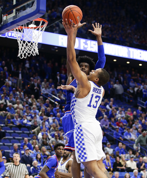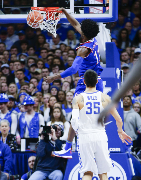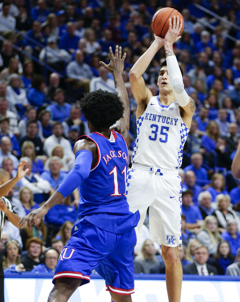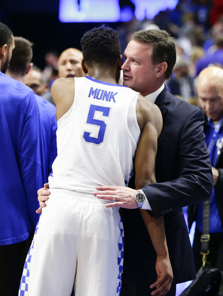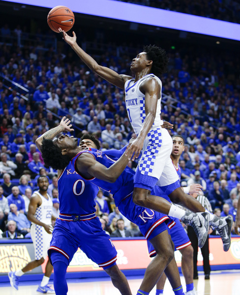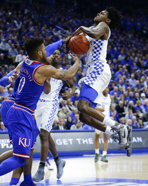 Kentucky used a 13-2 run to turn an 8-7 deficit into a 20-10 lead at 10:36. Monk had eight points, Derek Willis three and Bam Adebayo two in the run. KU had hit just 5 of 17 shots at that point in falling behind 10.