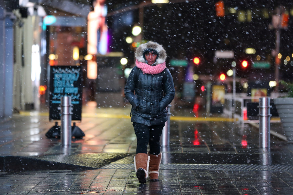 Wind gusts could create "near-whiteout conditions" for commuters, the National Weather Service said.