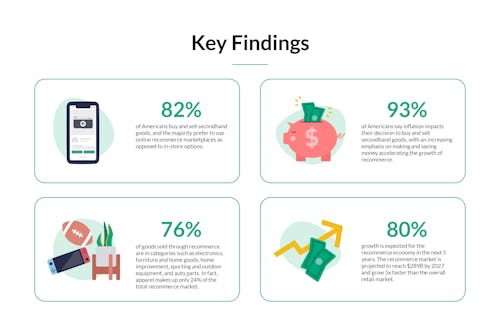 Given the historic growth of the recommerce market (and the rising impacts of inflation), secondhand spending is expected to hit $178 billion in 2022 and $289 billion by 2027, reports OfferUp. Its survey reveals that over half of Americans who already use reselling platforms (58 percent) plan to increase their buying and/or selling of pre-owned products in the next year, especially given the current state of the U.S. economy. A whopping 93 percent reported to OfferUp that inflation impacts their decision to shop secondhand.