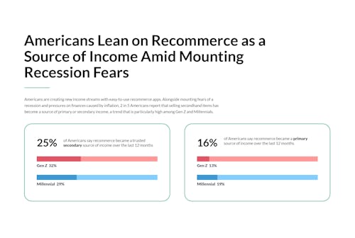 The recession has also impacted Americans’ selling habits, with many people turning to pre-owned marketplaces to create new income streams. OfferUp reports that two in five Americans sell secondhand items as a source of primary or secondary income, with higher numbers associated with Gen Z and Millennial consumers.