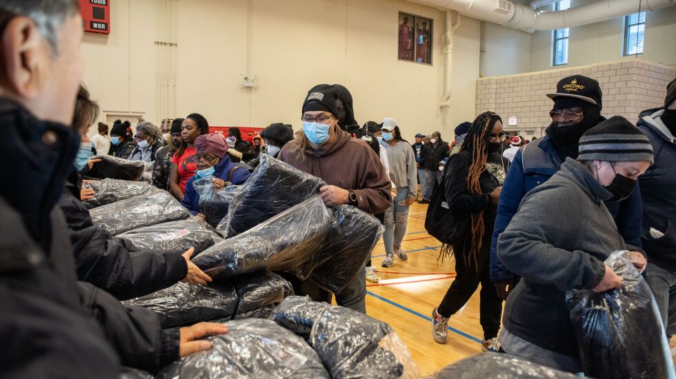 As temperatures plunged below freezing, volunteers handed out 500 jackets and 200 pairs of socks. The clothes were donated by Ann Jhin, chief executive officer of Jinny Beauty Supply and a member of the Korean American Friendship Network.