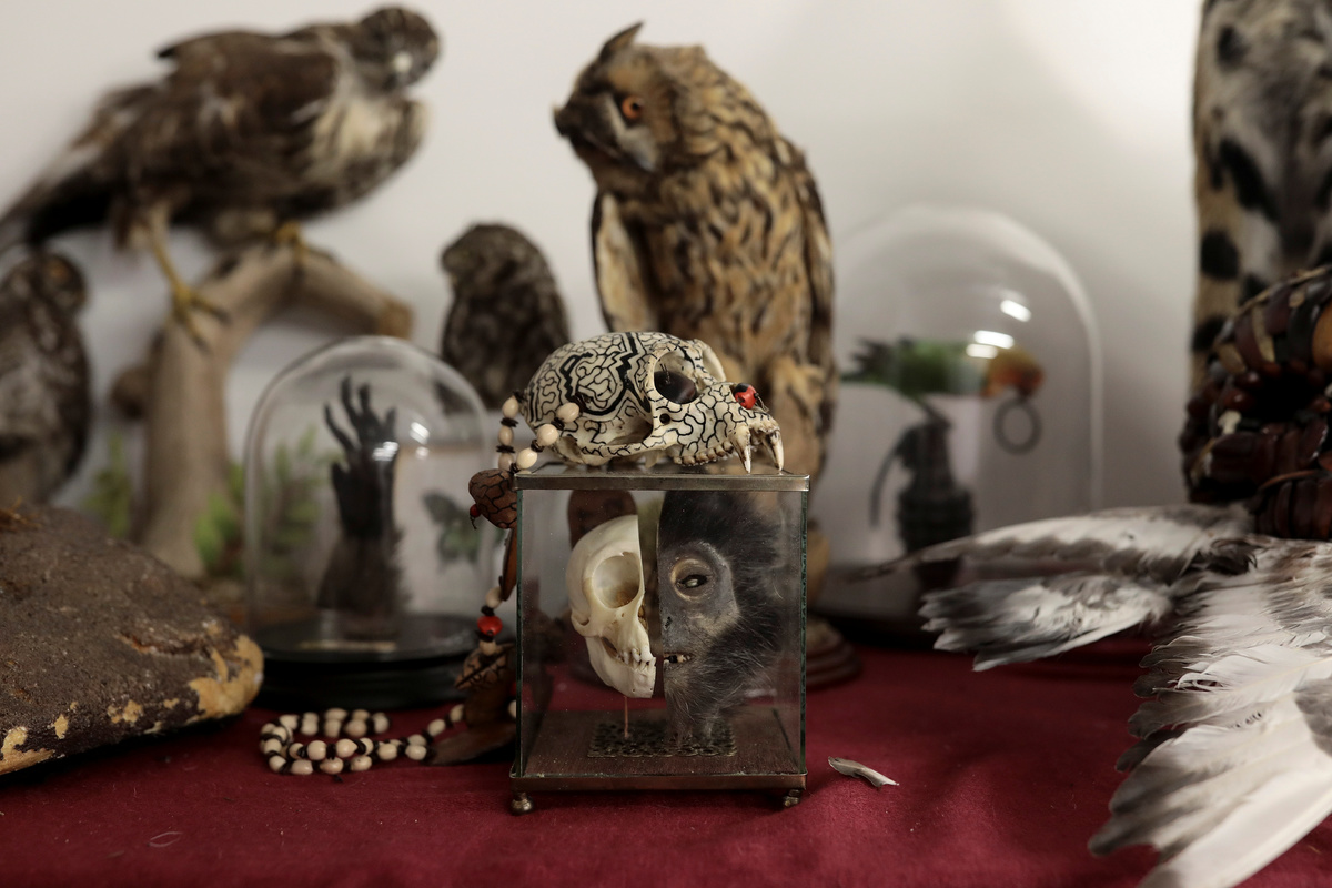 Goods which have been seized by UK Border Force officers at Heathrow Airport including taxidermy of endangered species, ivory carvings and herbal medicines sit on display at Custom House near Heathrow in London, Britain November 22, 2017. REUTERS/Simon Dawson