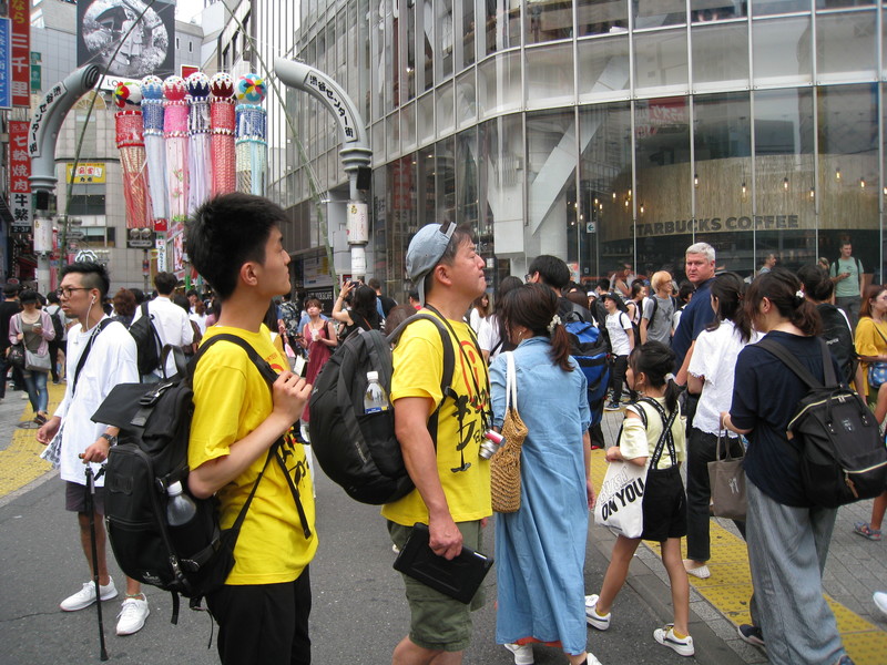 We walked around Shinjuku Station for about 90 minutes and around Shibuya Station for about 3 hours during the day and our assistance to foreign travelers included a Chinese group looking for a path to the Busta Shinjuku highway bus terminal, Swiss travelers searching for a Japan Railways (JR) ticket counter and Spanish travelers searching for a sushi restaurant.