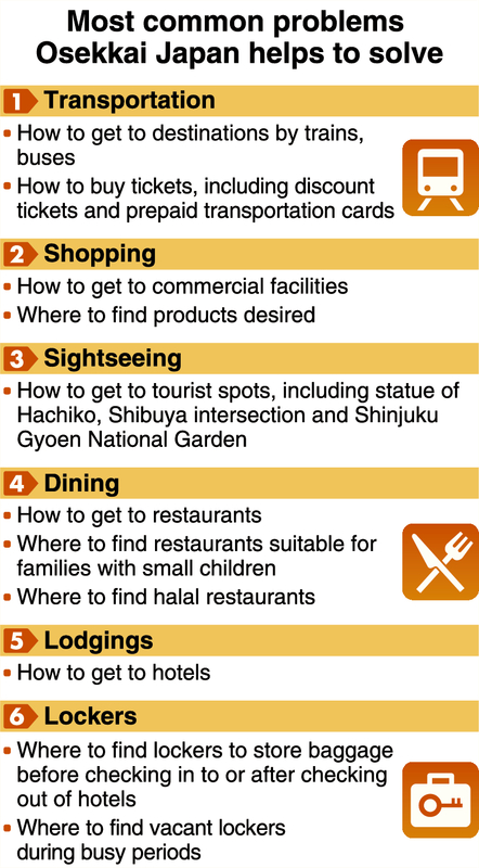 Osekkai Japan volunteers take their time to help others, sometimes even spending hours on just one person. Kinai said he once spent five hours helping a Frenchman get to a private lodging he said he had booked. Without detailed information on the lodging, Kinai made phone calls and other efforts to find it. Eventually, Kinai booked a different hotel for the man.