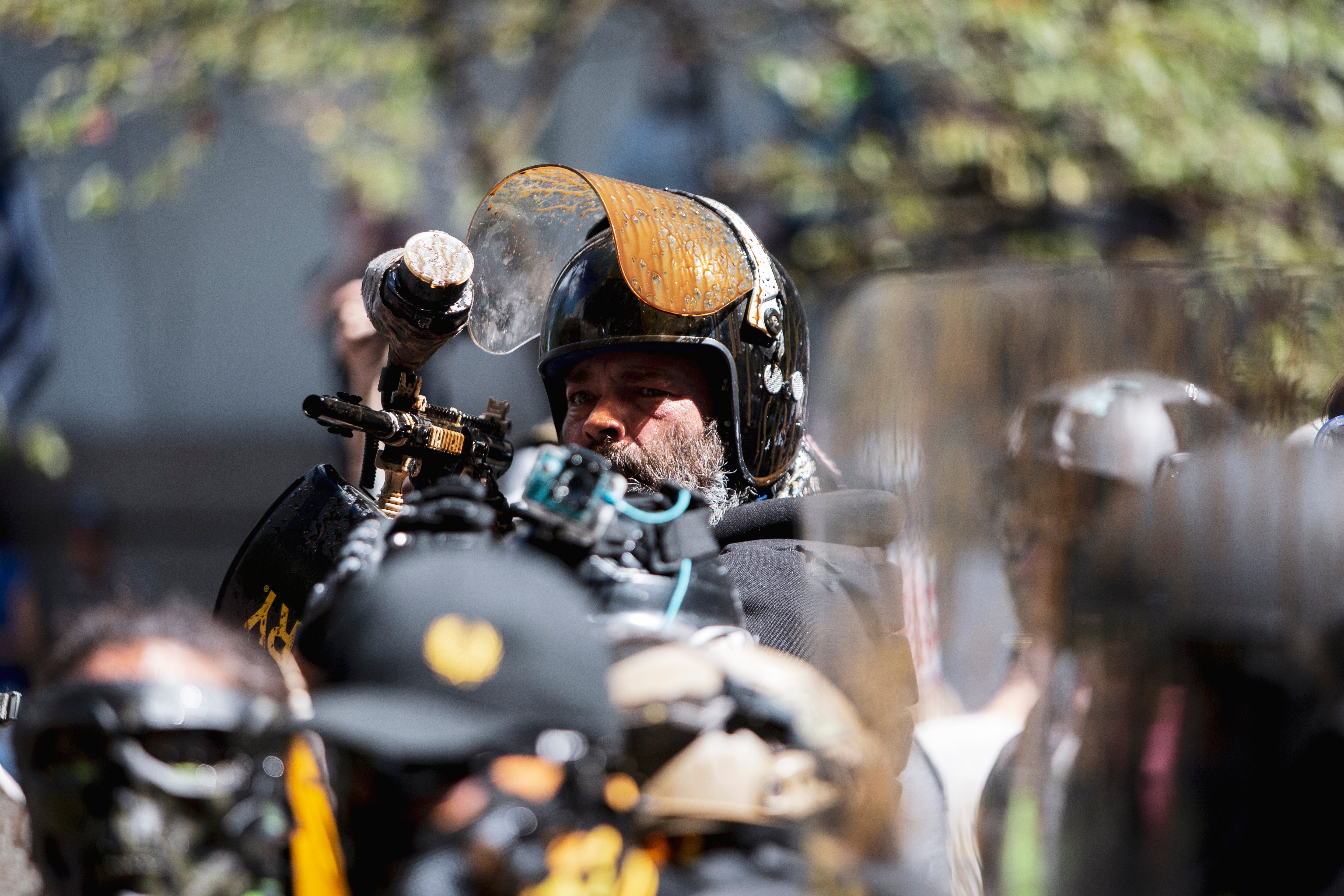 Mr Swinney pointed a revolver at the counterprotestors as fights broke out in the streets just outside of the county justice center, Oregon Public Broadcasting reported, with videos showing demonstrators ducking behind barriers as he pulled out the gun. No shots were fired.