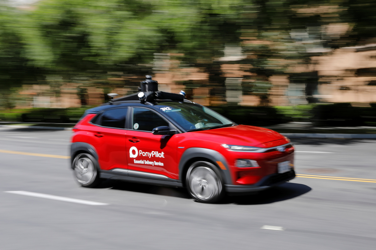 Toyota-backed self driving company Pony.ai begins to provide autonomous electric vehicles to deliver packages from local e-commerce platform Yamibuy during the outbreak of the coronavirus disease (COVID-19) in Irvine, California, U.S., April 28, 2020. REUTERS/Mike Blake