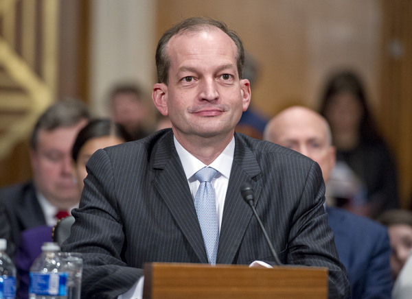 On the Senate floor before Acosta was confirmed Thursday, Sen. Lamar Alexander, R-Tenn., similarly praised Trump's nominee as "fortunate," saying Acosta would exercise "good judgment to re-evaluate labor policies that make it much harder to create jobs and find jobs."