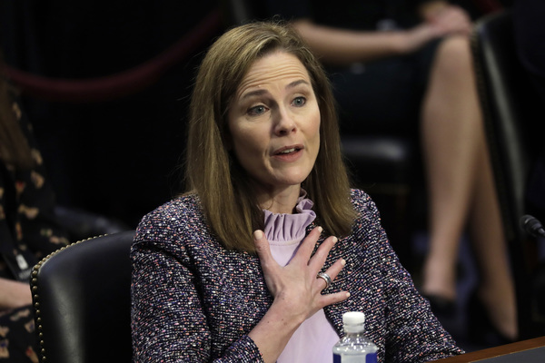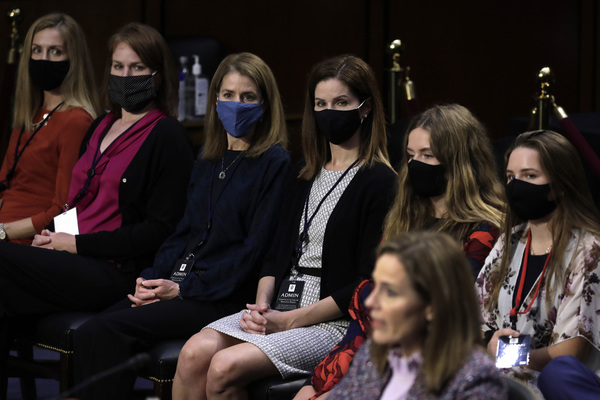 U.S. Supreme Court nominee Judge Amy Coney Barrett testifies during the third day of her confirmation hearing before the Senate Judiciary Committee on Capitol Hill Wednesday, Oct. 14, 2020 in Washington, D.C. (Yuri Gripas/Abaca Press/TNS) U.S. Supreme Court nominee Judge Amy Coney Barrett testifies during the third day of her confirmation hearing before the Senate Judiciary Committee on Capitol Hill Wednesday, Oct. 14, 2020 in Washington, D.C. (Yuri Gripas/Abaca Press/TNS) U.S. Supreme Court nominee Judge Amy Coney Barrett testifies as her family listens during the third day of her confirmation hearing before the Senate Judiciary Committee on Capitol Hill Wednesday, Oct. 14, 2020 in Washington, D.C. (Yuri Gripas/Abaca Press/TNS) S. Dick Durbin, D-Ill., listens as Amy Coney Barrett testifies on Capitol Hill on Wednesday, Oct. 14, 2020 in Washington, D.C. (Sarah Silbiger/Pool/Abaca Press/TNS)
