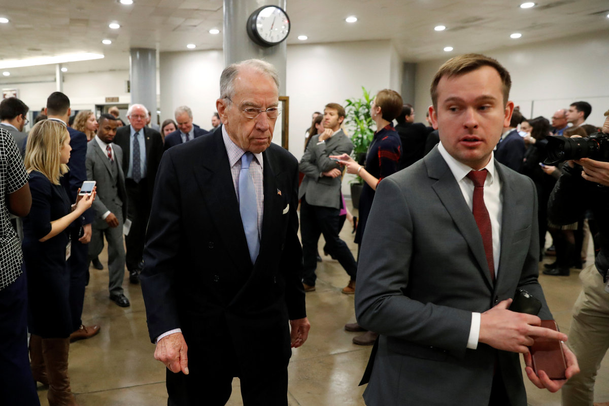 U.S. Senator Cory Booker (D-NJ), trailed by Senator Ed Markey (D-MA), Senator Bill Nelson (D-FL) and Senator James Lankford (R-OK), arrives ahead of a vote on a bill to renew the National Security Agency's warrantless internet surveillance program, at the U.S. Capitol in Washington, U.S. January 18, 2018. REUTERS/Jonathan ErnstReporters trail U.S. Senator Joe Manchin (D-WV) as he arrives ahead of a vote on a bill to renew the National Security Agency's warrantless internet surveillance program, at the U.S. Capitol in Washington, U.S. January 18, 2018. REUTERS/Jonathan ErnstReporters trail U.S. Senator Ted Cruz (R-TX) as he arrives ahead of a vote on a bill to renew the National Security Agency's warrantless internet surveillance program, at the U.S. Capitol in Washington, U.S. January 18, 2018. REUTERS/Jonathan ErnstReporters trail U.S. Senator Dianne Feinstein (D-CA) as she arrives ahead of a vote on a bill to renew the National Security Agency's warrantless internet surveillance program, at the U.S. Capitol in Washington, U.S. January 18, 2018. REUTERS/Jonathan ErnstU.S. Senator Chuck Grassley (R-IA) arrives ahead of a vote on a bill to renew the National Security Agency's warrantless internet surveillance program, at the U.S. Capitol in Washington, U.S. January 18, 2018. REUTERS/Jonathan ErnstReporters trail U.S. Senator Bob Corker (R-TN) as he arrives ahead of a vote on a bill to renew the National Security Agency's warrantless internet surveillance program, at the U.S. Capitol in Washington, U.S. January 18, 2018. REUTERS/Jonathan ErnstReporters trail U.S. Senator Susan Collins (R-ME) as she arrives ahead of a vote on a bill to renew the National Security Agency's warrantless internet surveillance program, at the U.S. Capitol in Washington, U.S. January 18, 2018. REUTERS/Jonathan ErnstU.S. Senator Kamala Harris (D-CA) arrives ahead of a vote on a bill to renew the National Security Agency's warrantless internet surveillance program, at the U.S. Capitol in Washington, U.S. January 18, 2018. REUTERS/Jonathan ErnstU.S. Senator Lindsey Graham (R-SC) talks to reporters as he arrives ahead of a vote on a bill to renew the National Security Agency’s warrantless internet surveillance program, at the U.S. Capitol in Washington, U.S. January 18, 2018. REUTERS/Jonathan ErnstU.S. Senator Lindsey Graham (R-SC) arrives ahead of a vote on a bill to renew the National Security Agency's warrantless internet surveillance program, at the U.S. Capitol in Washington, U.S. January 18, 2018. REUTERS/Jonathan ErnstU.S. Senator Elizabeth Warren (D-MA) arrives ahead of a vote on a bill to renew the National Security Agency's warrantless internet surveillance program, at the U.S. Capitol in Washington, U.S. January 18, 2018. REUTERS/Jonathan Ernst