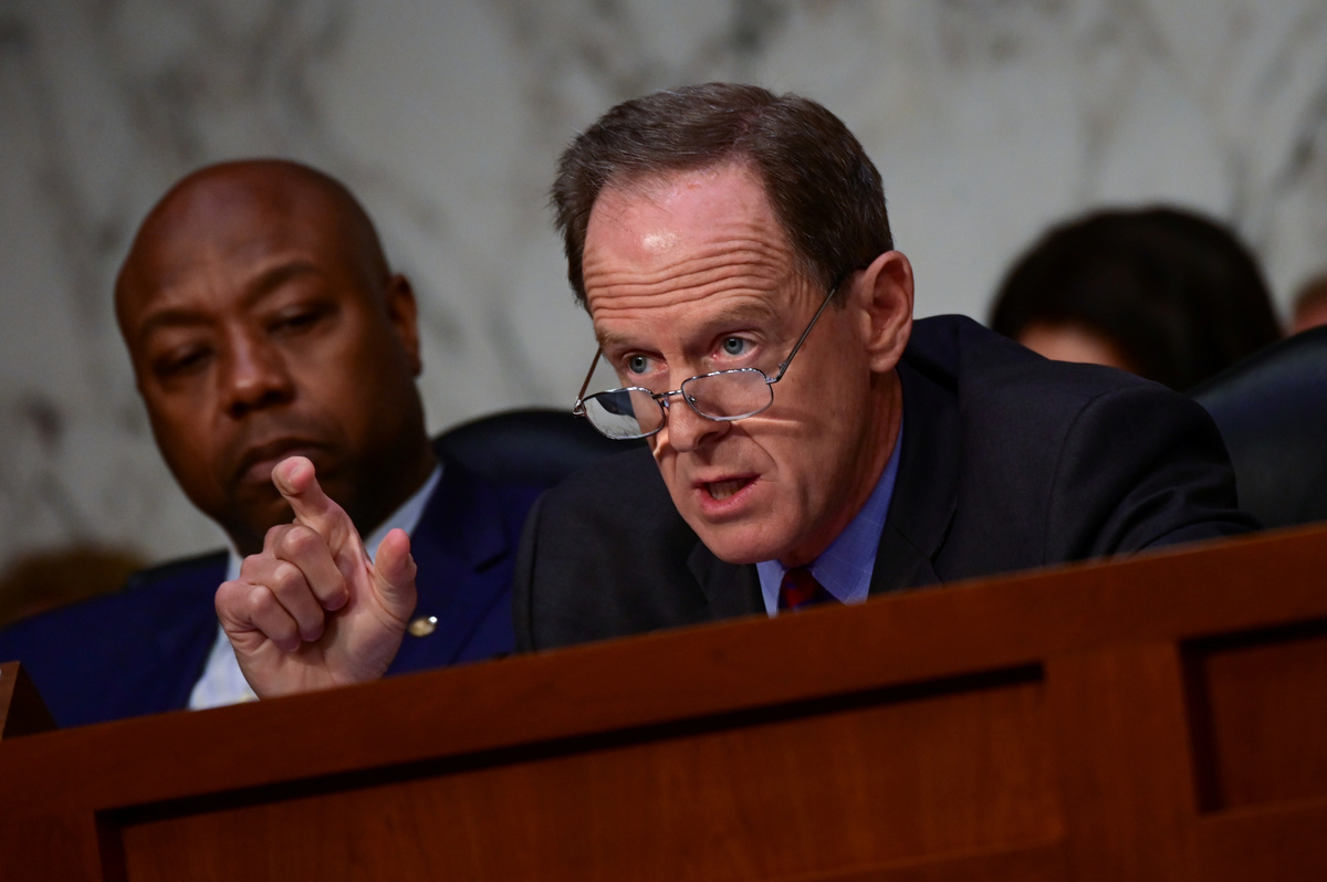 Pat Toomey (R-PA) questions David Marcus, head of Facebook's Calibra (digital wallet service), during testimony before a Senate Banking, Housing and Urban Affairs Committee hearing on "Examining Facebook's Proposed Digital Currency and Data Privacy Considerations" on Capitol hill in Washington, U.S., July 16, 2019. REUTERS/Erin Scott