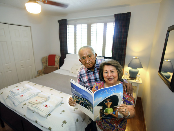 Olimpia and Ismael Yataco knew they needed financial help when Ismael got sick and his television repair business tanked. They turned to Airbnb and now rent three rooms in their four-bedroom West Kendall, Fla., house.