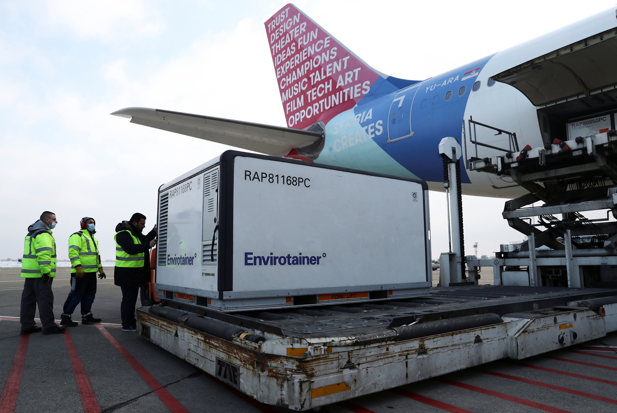 President Aleksandar Vucic was accompanied by Beijing's ambassador to the Balkan country at Belgrade's airport as containers carrying the vaccines were unloaded from an Air Serbia plane.
