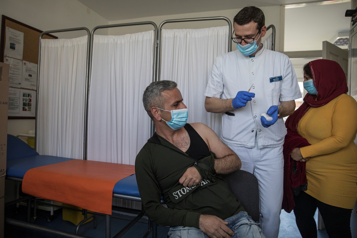 So far, enough of the AztraZeneca vaccine has been delivered to give 570 migrants their first dose.