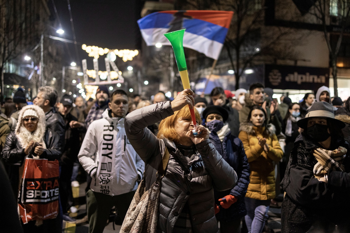 The protesters rallied in front of the office of President Aleksandar Vucic and later marched through the city centre.