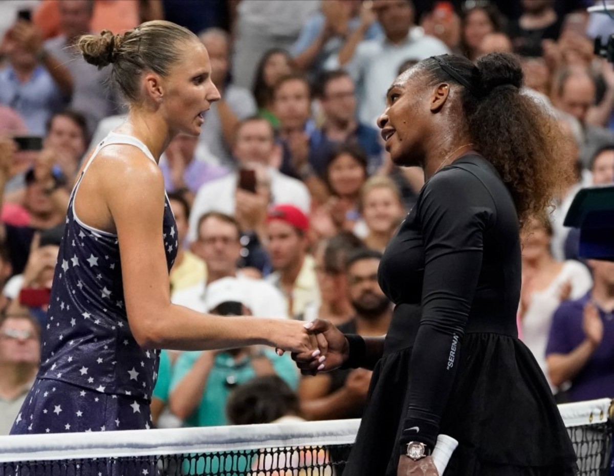 Sept 4 2018; New York, NY, USA; Serena Williams of the USA (right) and Karolina Pliskova of the Czech Republic greet each other after a quarterfinal match on day nine of the 2018 U.S. Open tennis tournament at USTA Billie Jean King National Tennis Center. Mandatory Credit: Robert Deutsch-USA TODAY Sports