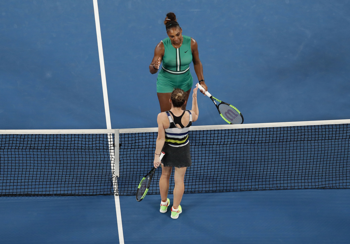 MELBOURNE (Reuters) - Serena Williams staved off a spectacular fightback from world number one Simona Halep to reach the quarter-finals of the Australian Open on Monday and remain on course for her first Grand Slam triumph since becoming a mother.