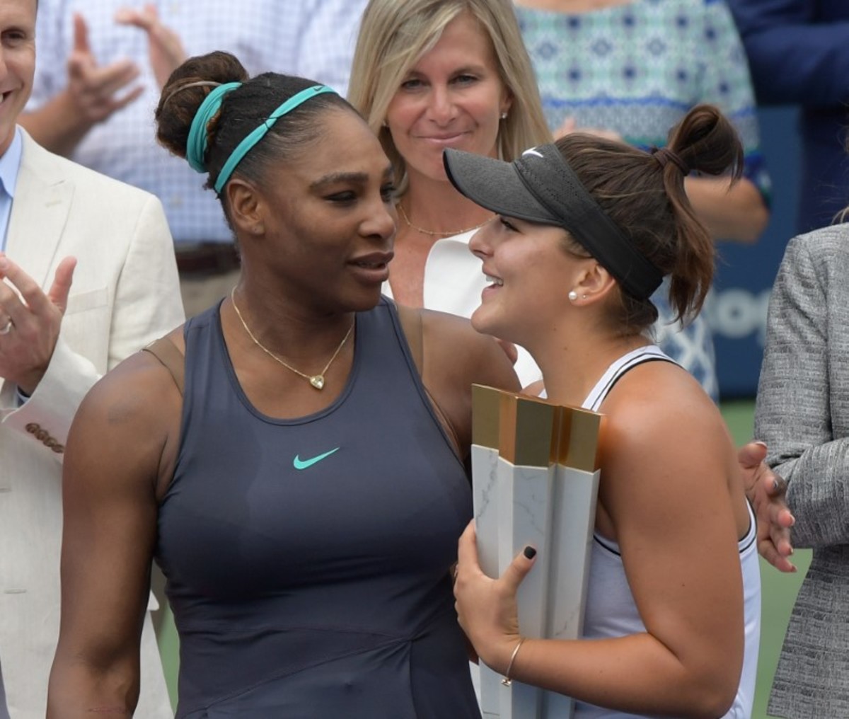 "I feel for Serena so much. I've been through so much the last year with injury so I am so sorry she had to go out this way," the 19-year-old said during the trophy ceremony.