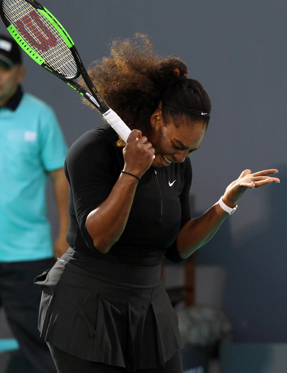 It was Williams' first outing since winning her 23rd grand slam singles title at the Australian Open in January, while pregnant, before taking time out to have the baby.