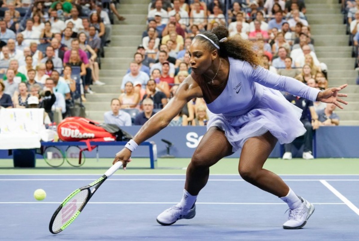 Aug 29, 2018; New York, NY, USA; Serena Williams of the USA hits to Carina Witthoeft of Germany in a second round match on day three of the 2018 U.S. Open tennis tournament at USTA Billie Jean King National Tennis Center. Mandatory Credit: Robert Deutsch-USA TODAY Sports