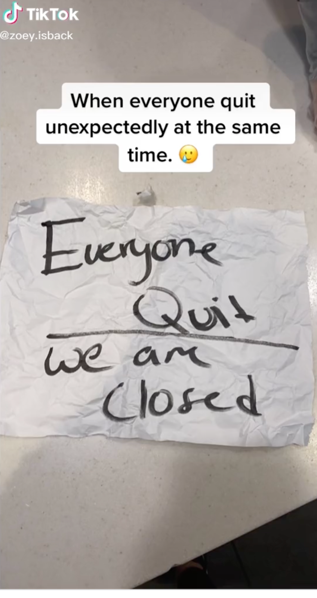 “When everyone quit unexpectedly at the same time,” the caption read.
