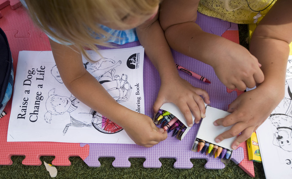 The book by New York Times best-selling author Laura Numeroff was featured last Monday during Art and Story Time, new this year at the Festival of Arts grounds. The program combines book reading with an art project. Children colored after learning about service dogs.