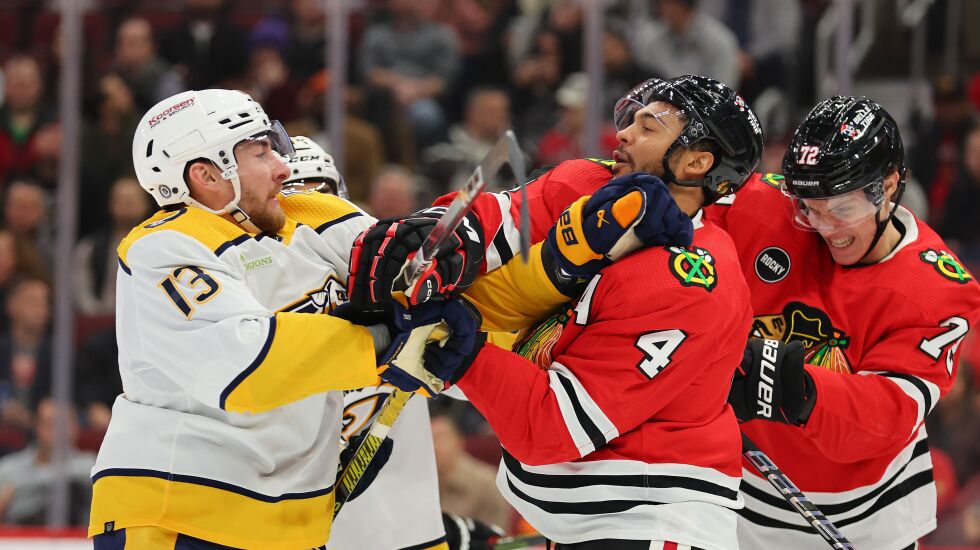 On Tuesday against the Oilers, that foursome collectively formed two-thirds of the Blackhawks’ defensive corps.