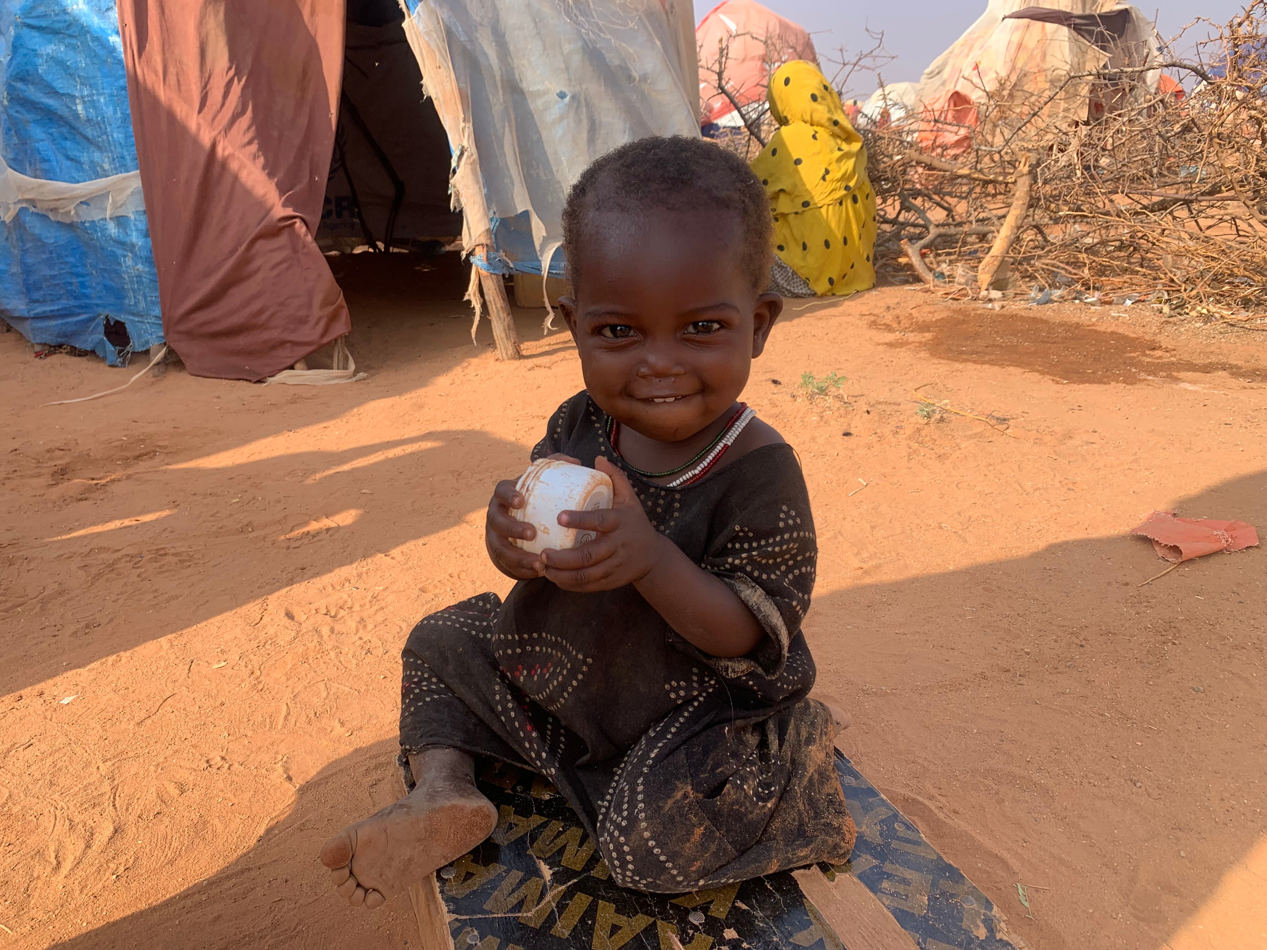 One-year-old Hamdo – a busy, cheeky girl – is sucking on a packet of Plumpy Sup and comes over to her mum for a cuddle. She stares at me with the most intense eyes and starts squeezing the small microphone that I've clipped to Aisha's hijab for our interview.