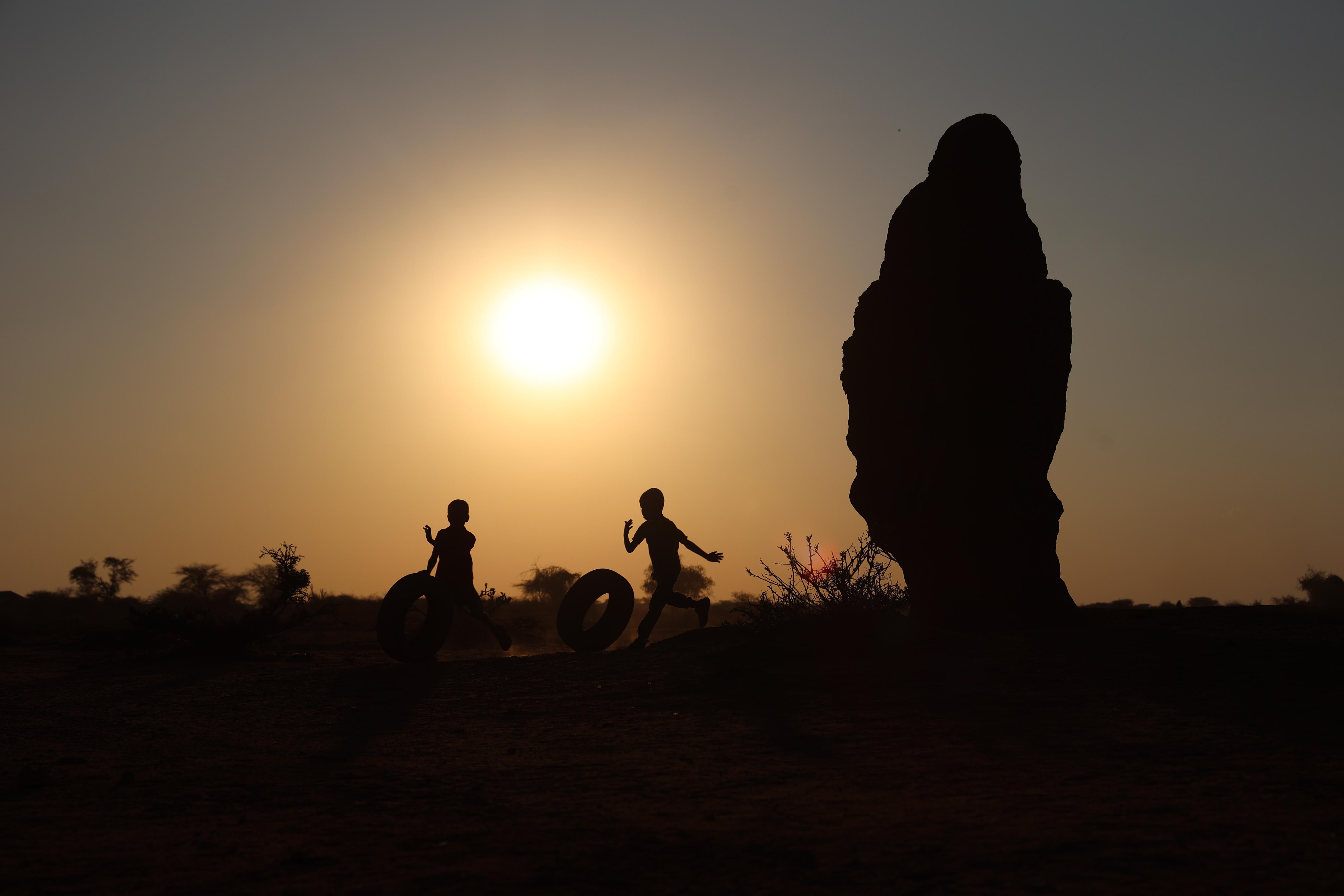 Here in the camp, there's no shade, just bone-dry earth baking in the morning sun.
