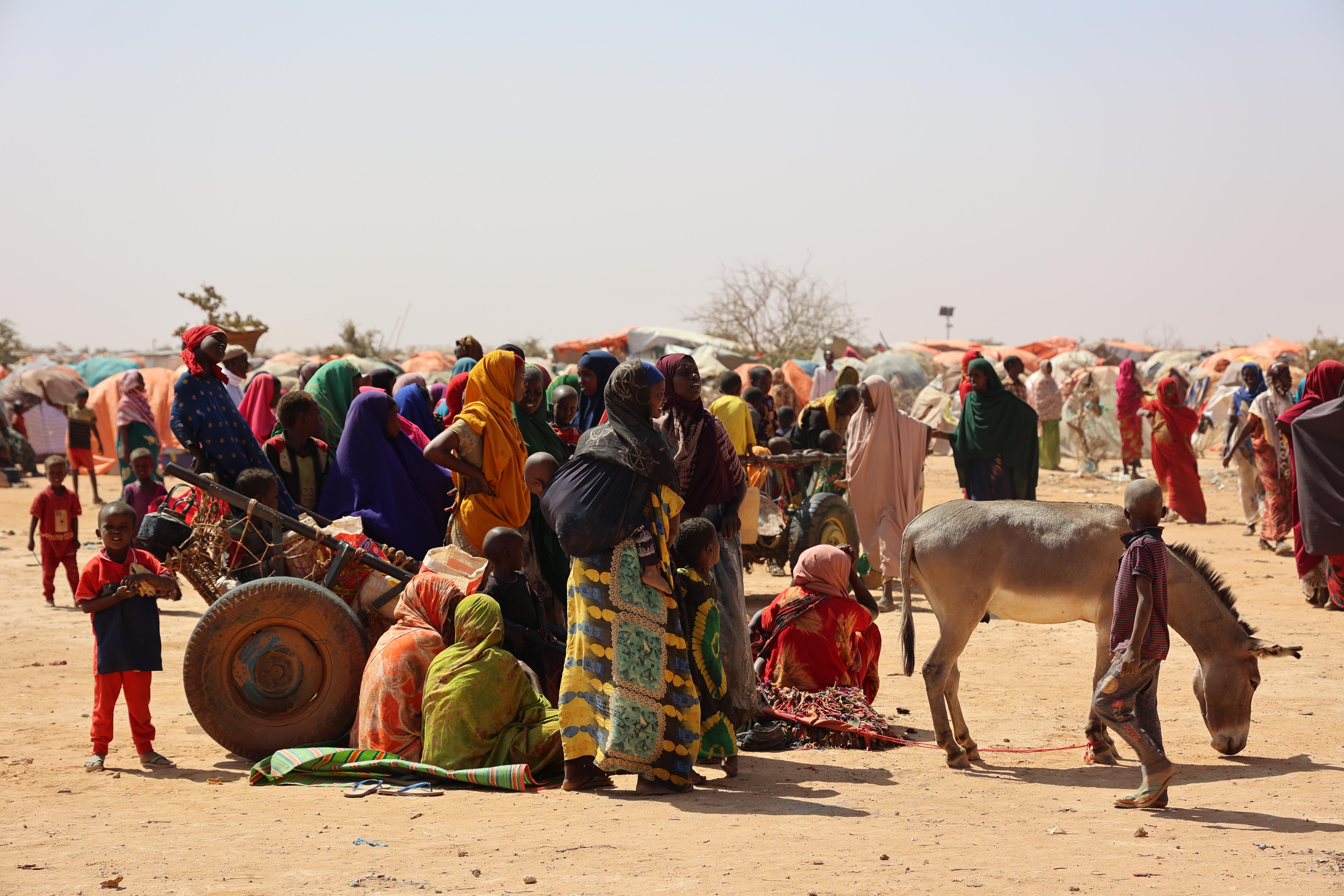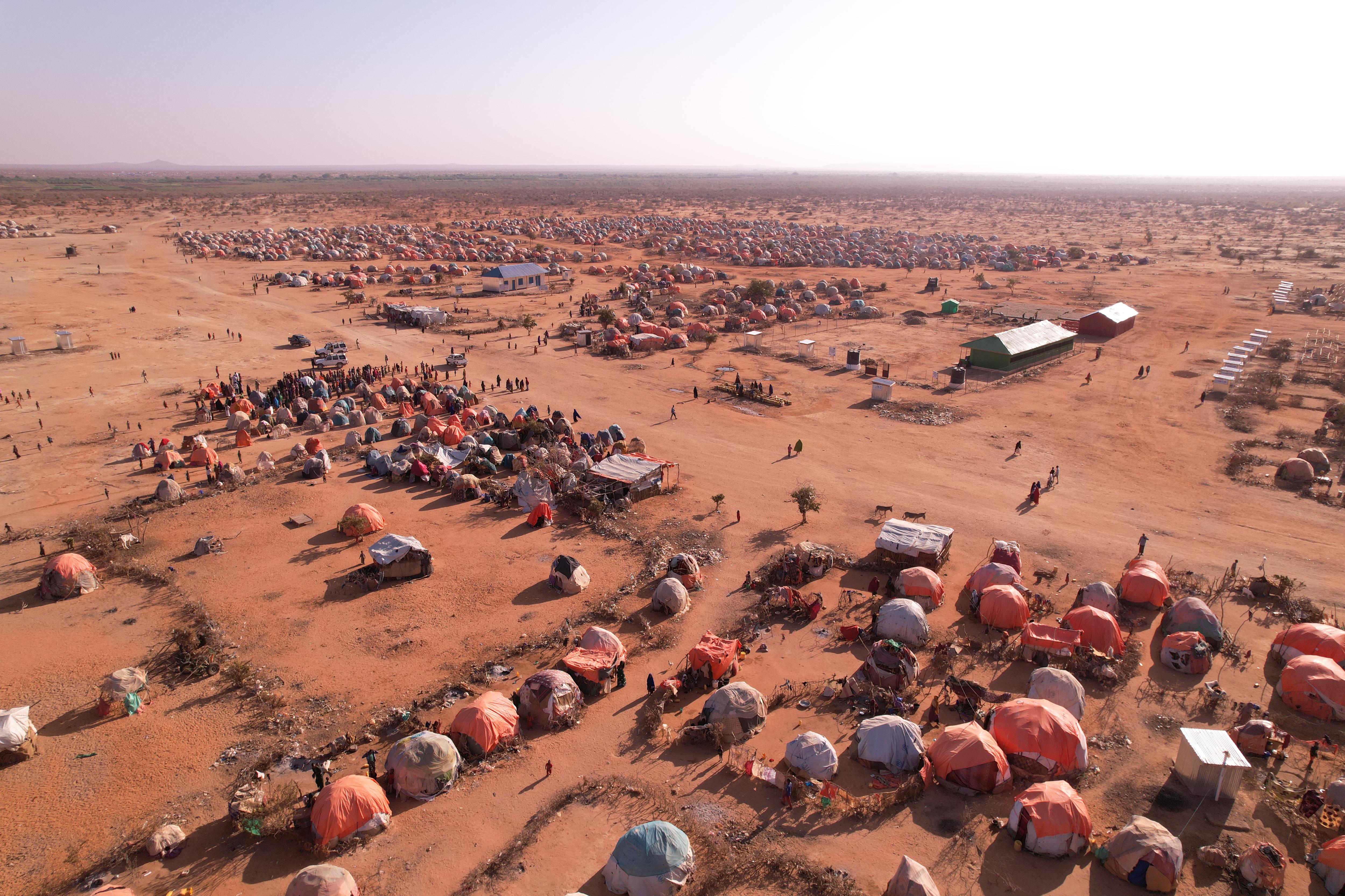 Waves of people continue to pour into the Ladan camp in south-west Somalia, where aid agencies are providing basics like water, food and shelter.
