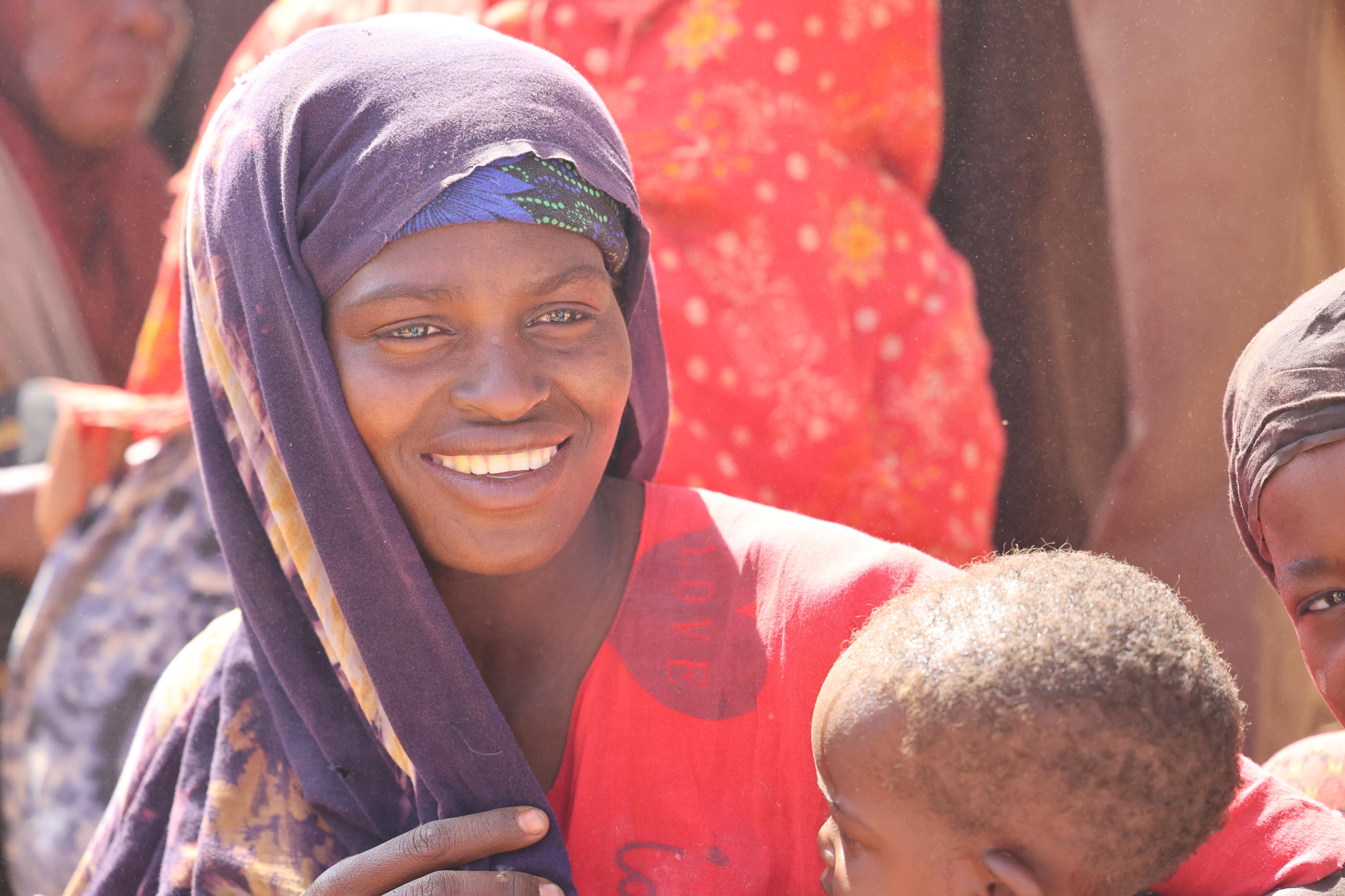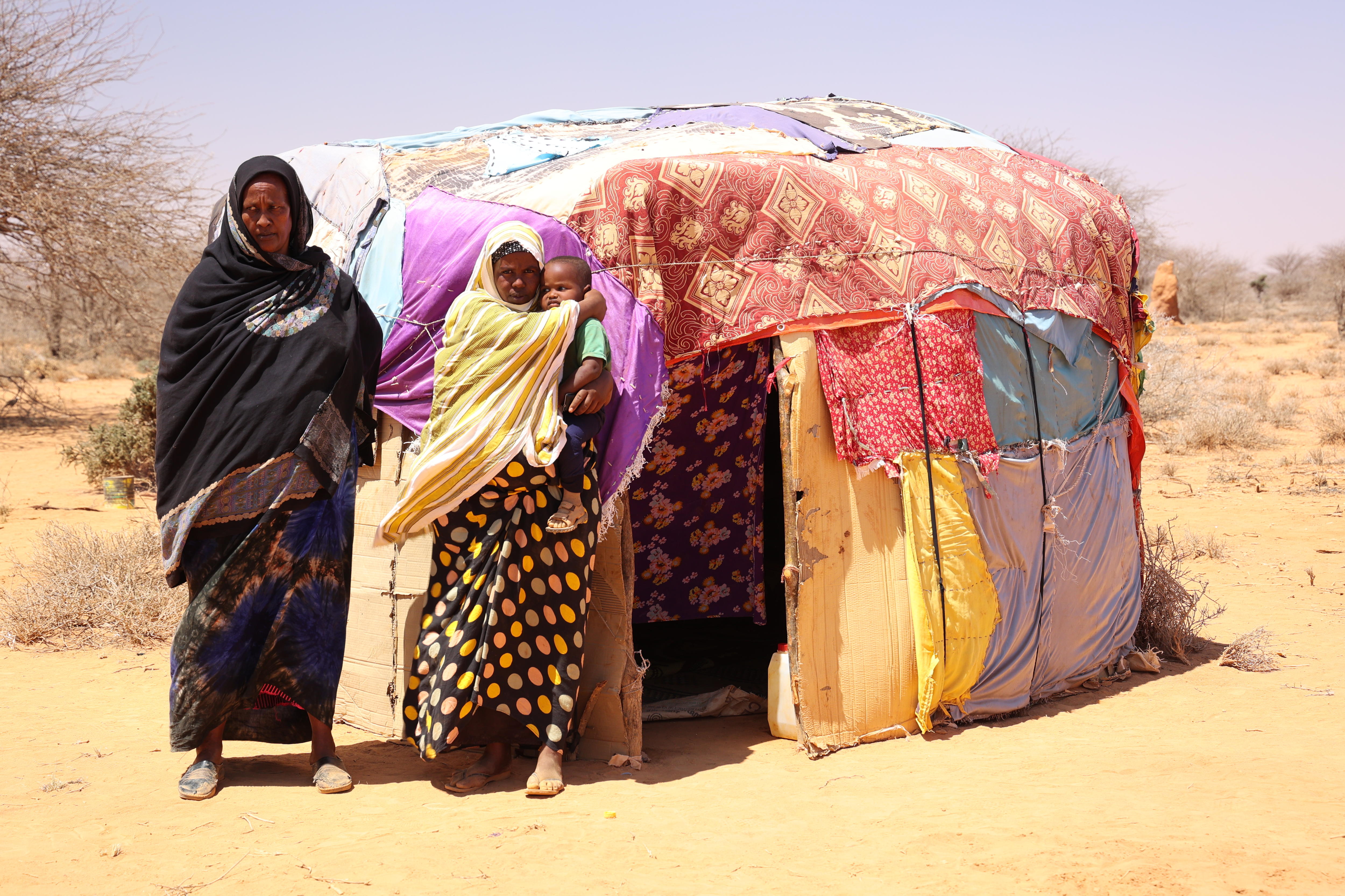 Aisha and her one-year-old daughter Hamdo (right) after receiving much-needed food and water.
