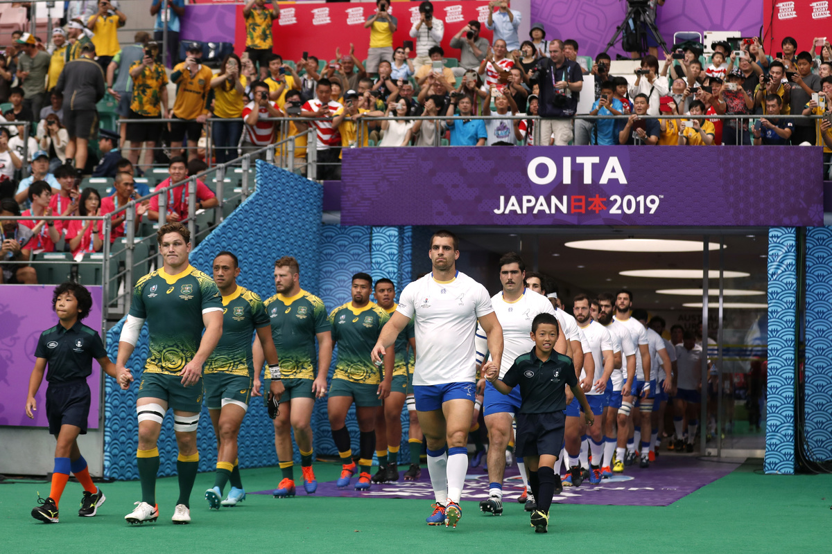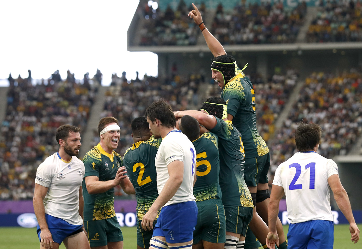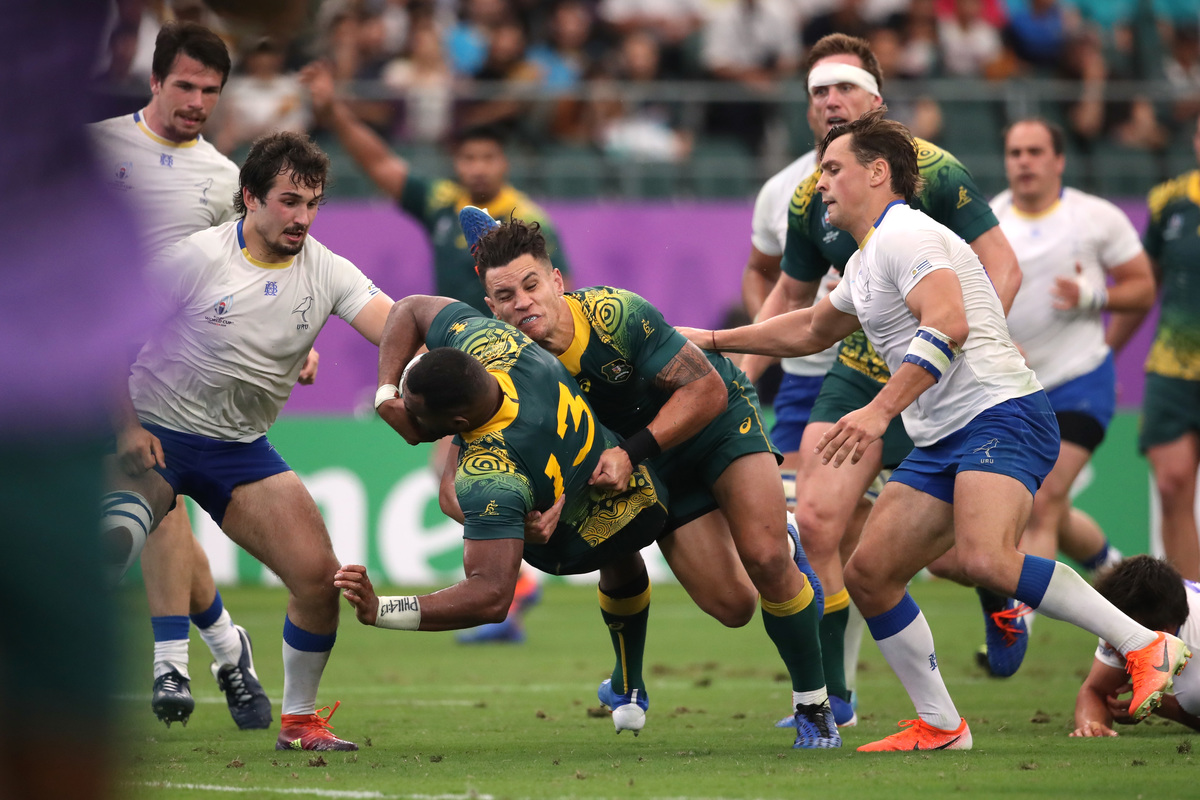 OITA, Japan (Reuters) - Twice champions Australia overcame a sloppy start to crush Uruguay 45-10 on Saturday, forging towards the World Cup quarter-finals with some exhilarating running rugby despite their problems with high tackles resurfacing at Oita Stadium.