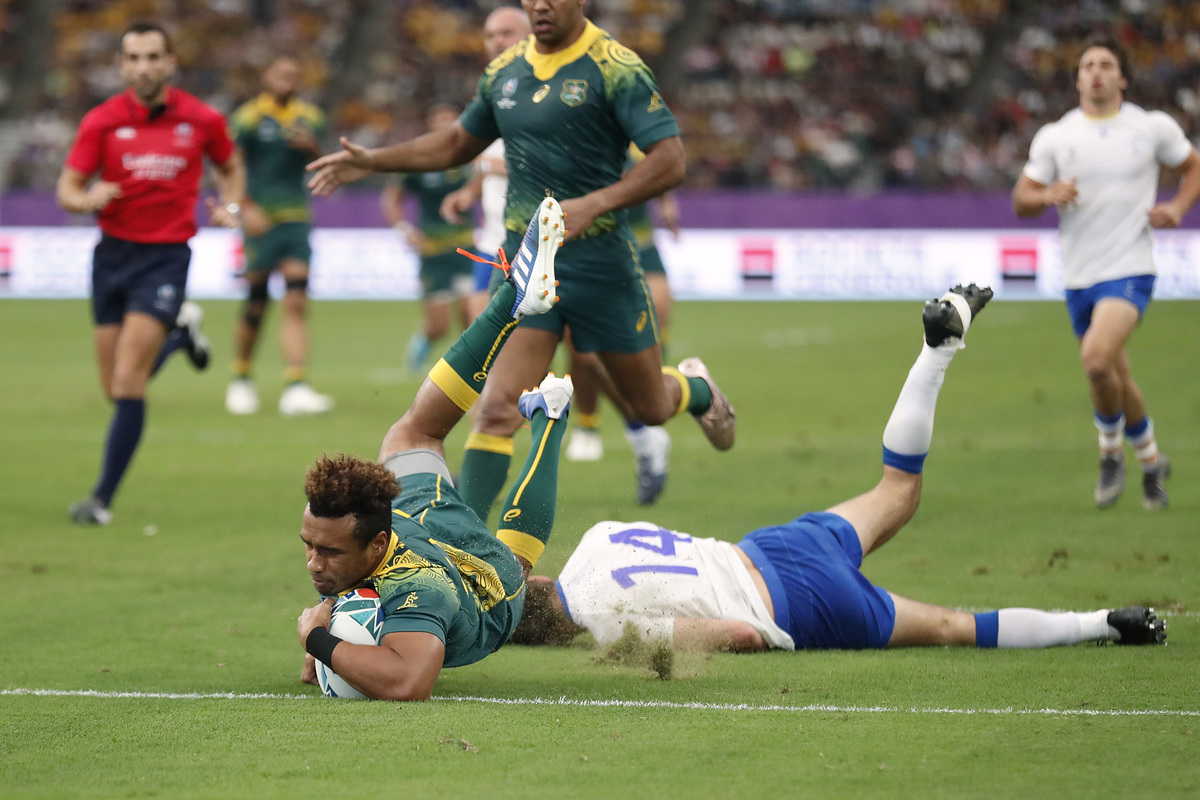 But the Wallabies, wearing their indigenous strip for the first time at a World Cup, were able to mitigate the damage to lead 19-3 at the break before throwing down the hammer in a dominant second half.