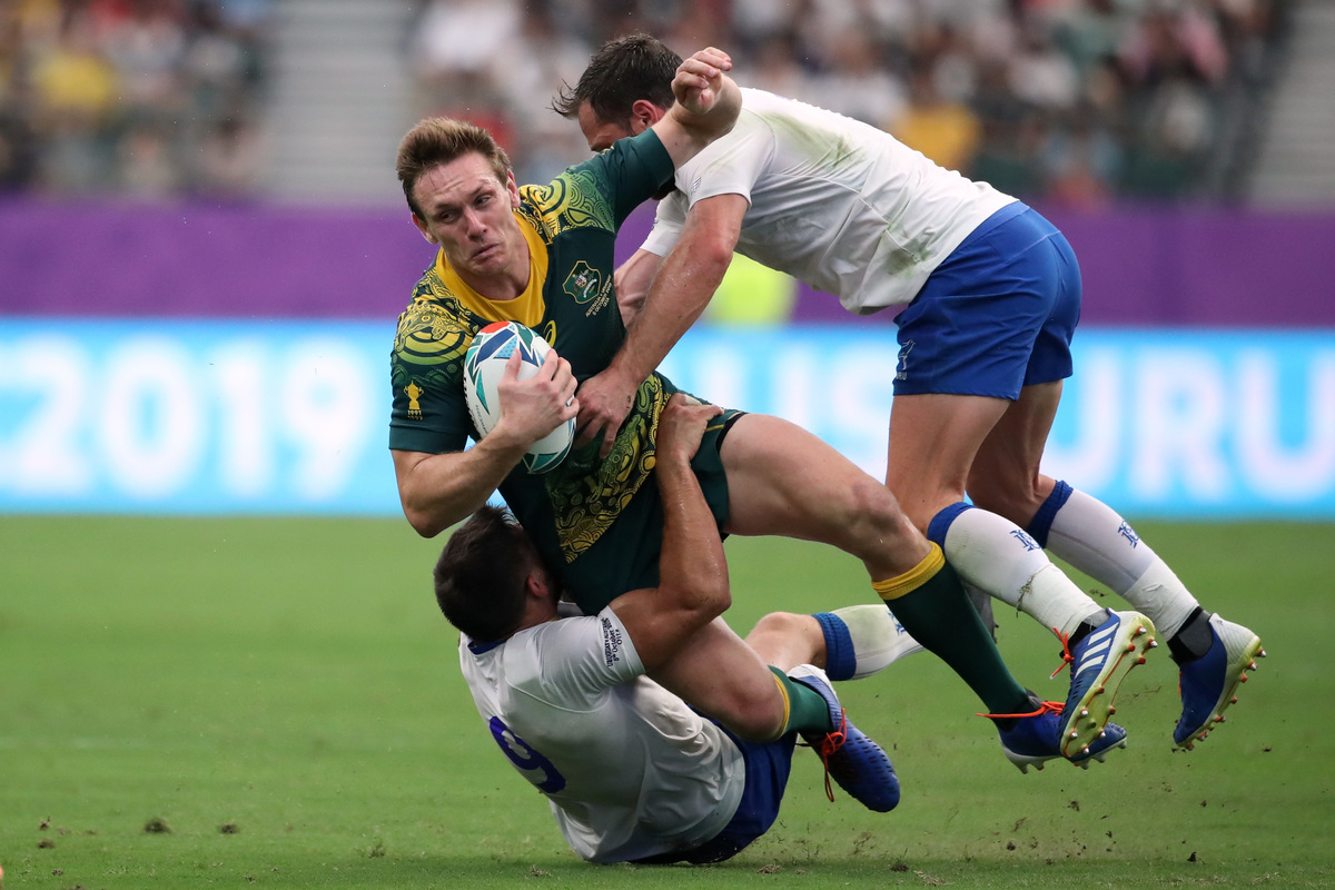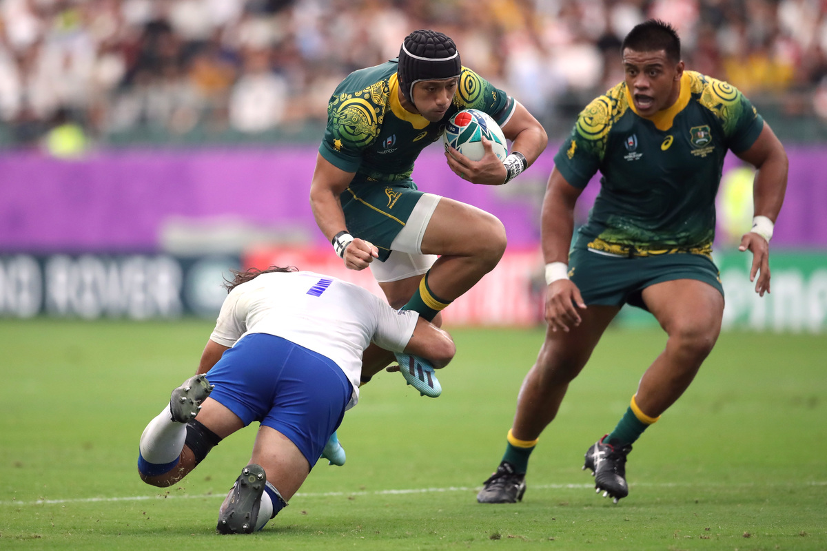 Australia had trouble getting low enough in their tackling, with both lock Adam Coleman and loose forward Lukhan Salakaia-Loto yellow-carded in an eventful opening half.