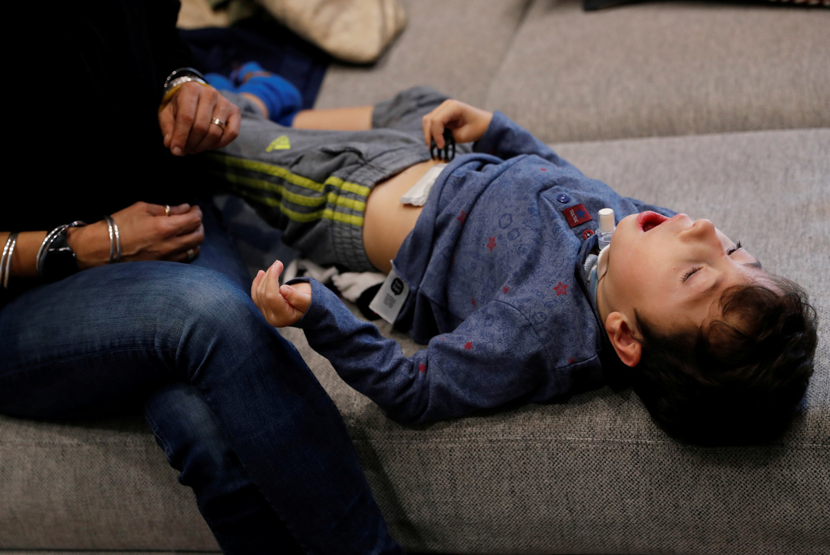 Sirio Persichetti, a 7-year-old Italian with spastic tetraplegia and cerebral palsy who has become an influencer by challenging perceptions of disability, lies down on a sofa at home with his mum Valentina Perniciaro, in Rome, Italy October 22, 2020. Picture taken October 22, 2020. REUTERS/Yara Nardi