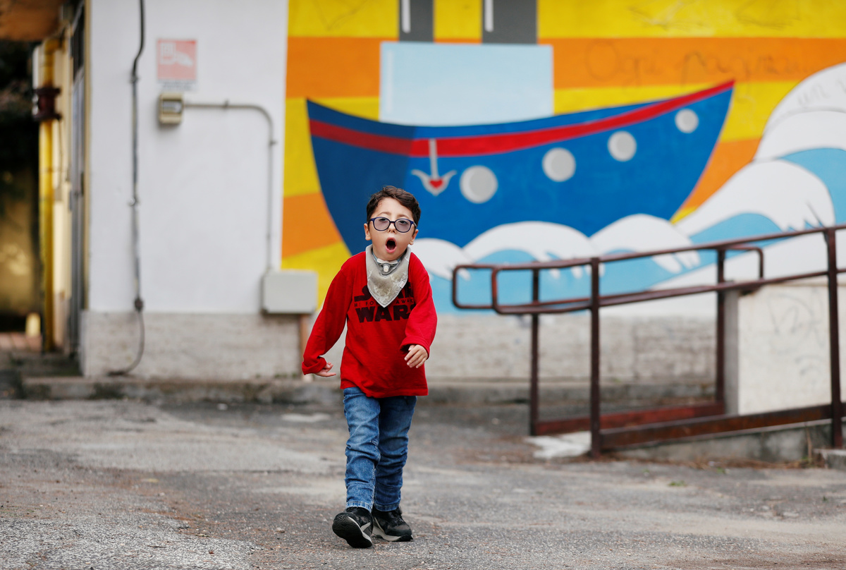 Sirio Persichetti, a 7-year-old Italian with spastic tetraplegia and cerebral palsy who has become an influencer by challenging perceptions of disability, leaves school after a day of lessons in Rome, Italy, October 23, 2020. REUTERS/Yara Nardi