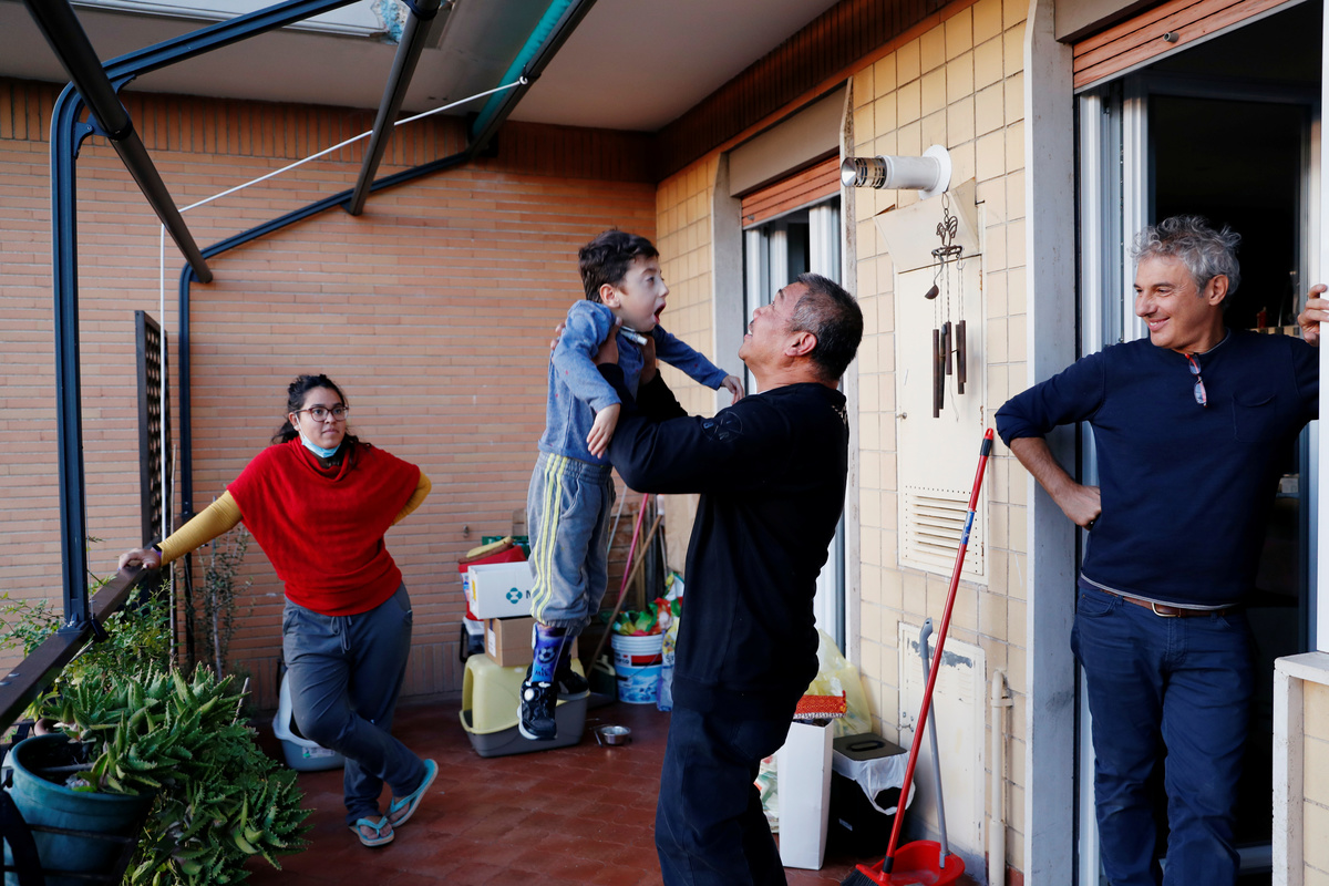 Valentina Perniciaro helps her son Sirio Persichetti, a 7-year-old Italian with spastic tetraplegia and cerebral palsy who has become an influencer by challenging perceptions of disability, with his new hearing aid during a visit to a health clinic, in Rome, Italy, October 21, 2020. REUTERS/Yara NardiPaolo and Nilo Persichetti, the father and the brother of Sirio Persichetti, a 7-year-old Italian with spastic tetraplegia and cerebral palsy who has become an influencer by challenging perceptions of disability, are seen in their home, in Rome, Italy, October 20, 2020. REUTERS/Yara NardiSirio Persichetti, a 7-year-old Italian with spastic tetraplegia and cerebral palsy who has become an influencer by challenging perceptions of disability, plays on the balcony at his home in Rome, Italy, October 22, 2020. REUTERS/Yara NardiValentina Perniciaro and her son Sirio Persichetti, a 7-year-old with spastic tetraplegia and cerebral palsy who has become an influencer by challenging perceptions of disability, are seen in the car with nurse Jenny, as they drive home from school, in Rome, Italy, October 20, 2020. REUTERS/Yara Nardi