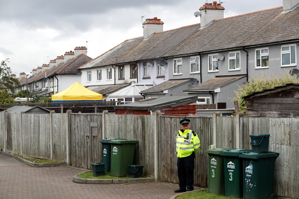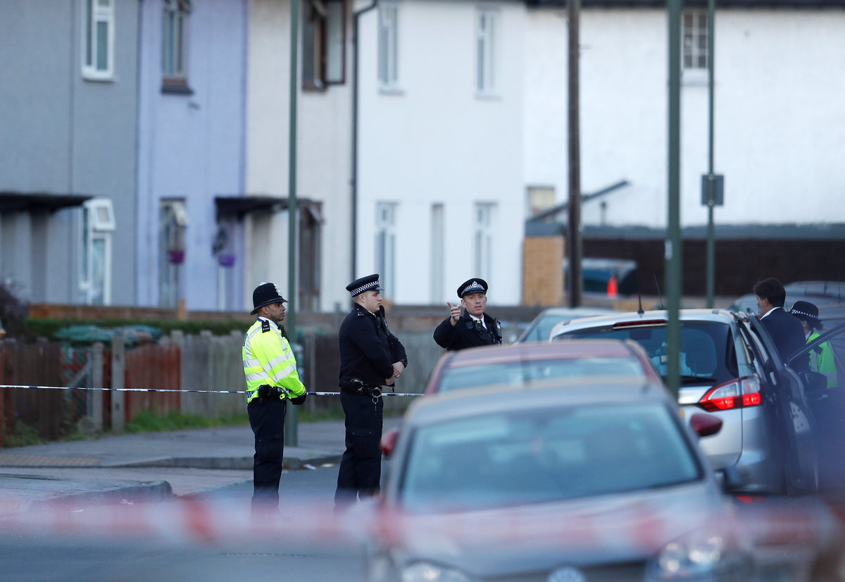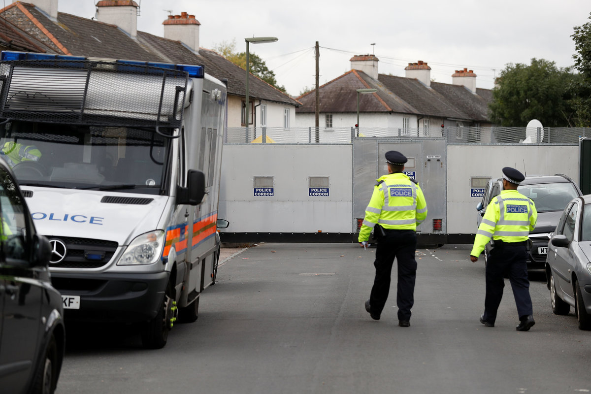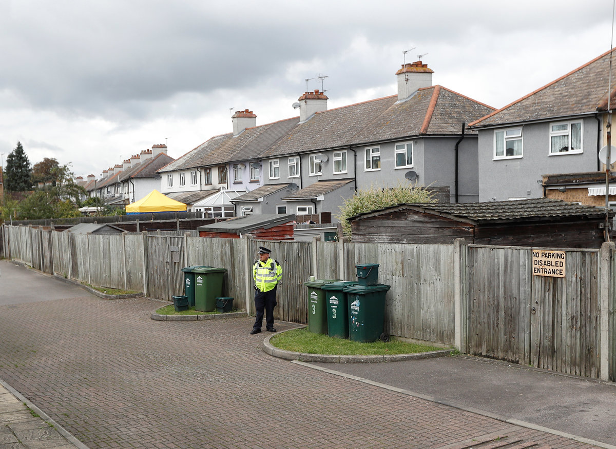 A police officer stands on duty at the back of a property being searched after a man was arrested in connection with an explosion on a London Underground train, in Sunbury-on-Thames, Britain, September 17, 2017. REUTERS/Peter Nicholls