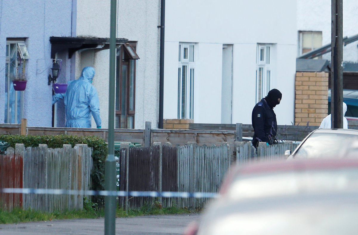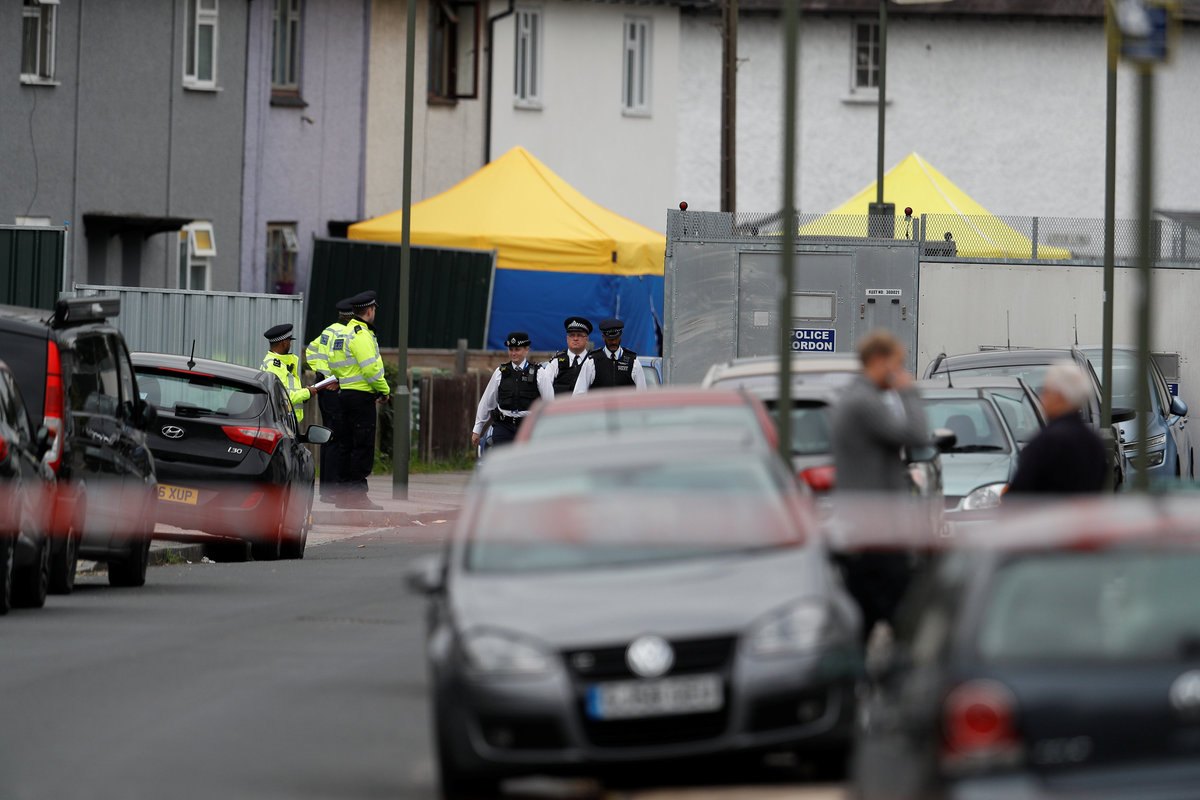 Police officers walk behind cordon tape set up around a property being searched after a man was arrested in connection with an explosion on a London Underground train, in Sunbury-on-Thames, Britain, September 17, 2017. REUTERS/Peter NichollsPolice officers stand behind cordon tape near a property that was searched after a man was arrested in connection with an explosion on a London Underground train, in Sunbury-on-Thames, Britain, September 16, 2017. REUTERS/Peter NichollsInvestigators leave a property being searched after a man was arrested in connection with an explosion on a London Underground train, in Sunbury-on-Thames, Britain, September 16, 2017. REUTERS/Peter NichollsForensics investigators film a property being searched after a man was arrested in connection with an explosion on a London Underground train, in Sunbury-on-Thames, Britain, September 16, 2017. REUTERS/Peter Nicholls TPX IMAGES OF THE DAY TPX IMAGES OF THE DAYArmed police officers patrol in Westminster, in London, Britain, September 16, 2017. REUTERS/Peter NichollsA passenger leaves Parson's Green Underground station after it reopened following an explosion on a rush hour train yesterday morning, in London, Britain, September 16, 2017. REUTERS/Peter NichollsPassengers wait to for a train at Parson's Green Underground station after it reopened following an explosion on a rush hour train yesterday morning, in London, Britain, September 16, 2017. REUTERS/Peter Nicholls