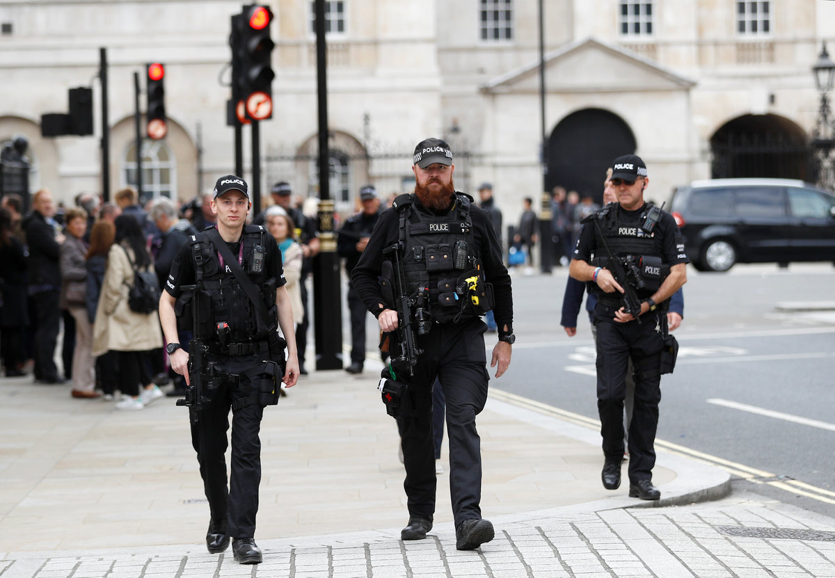 On Saturday, armed police patrolled the streets near government departments in Westminster and guarded Premier League soccer grounds hosting matches.