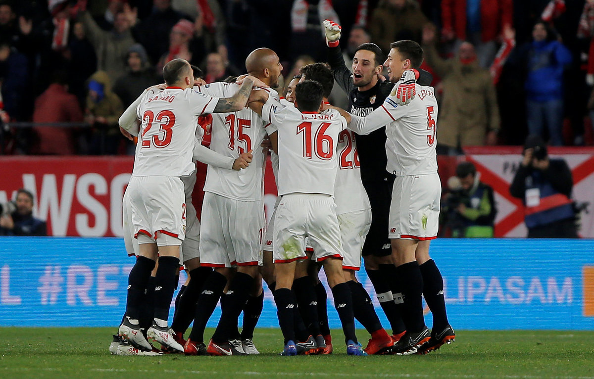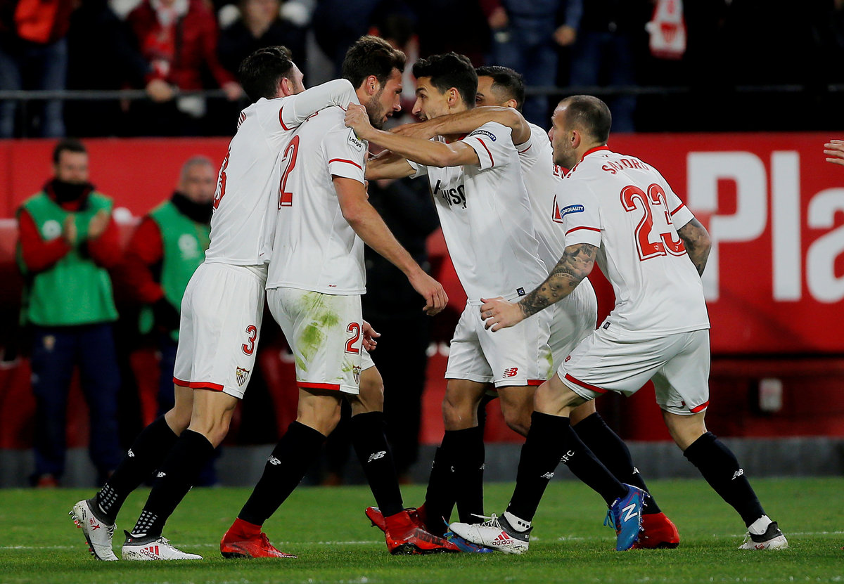 Soccer Football - Spanish King's Cup Semi Final Second Leg - Sevilla vs Leganes - Ramon Sanchez Pizjuan, Seville, Spain - February 7, 2018 Sevilla players celebrate after the match REUTERS/Jon NazcaSoccer Football - Spanish King's Cup Semi Final Second Leg - Sevilla vs Leganes - Ramon Sanchez Pizjuan, Seville, Spain - February 7, 2018 Leganes coach Asier Garitano before the match REUTERS/Jon NazcaSoccer Football - Spanish King's Cup Semi Final Second Leg - Sevilla vs Leganes - Ramon Sanchez Pizjuan, Seville, Spain - February 7, 2018 Sevilla’s Sergio Rico celebrates after the match REUTERS/Jon NazcaSoccer Football - Spanish King's Cup Semi Final Second Leg - Sevilla vs Leganes - Ramon Sanchez Pizjuan, Seville, Spain - February 7, 2018 Sevilla coach Vincenzo Montella before the match REUTERS/Jon NazcaSoccer Football - Spanish King's Cup Semi Final Second Leg - Sevilla vs Leganes - Ramon Sanchez Pizjuan, Seville, Spain - February 7, 2018 Sevilla’s Pablo Sarabia and Ever Banega celebrates after the match REUTERS/Jon NazcaSoccer Football - Spanish King's Cup Semi Final Second Leg - Sevilla vs Leganes - Ramon Sanchez Pizjuan, Seville, Spain - February 7, 2018 Leganes' Raul Garcia and' Darko Brasanac applauds fans after the match REUTERS/Jon NazcaSoccer Football - Spanish King's Cup Semi Final Second Leg - Sevilla vs Leganes - Ramon Sanchez Pizjuan, Seville, Spain - February 7, 2018 Sevilla players celebrate with fans after the match REUTERS/Jon Nazca